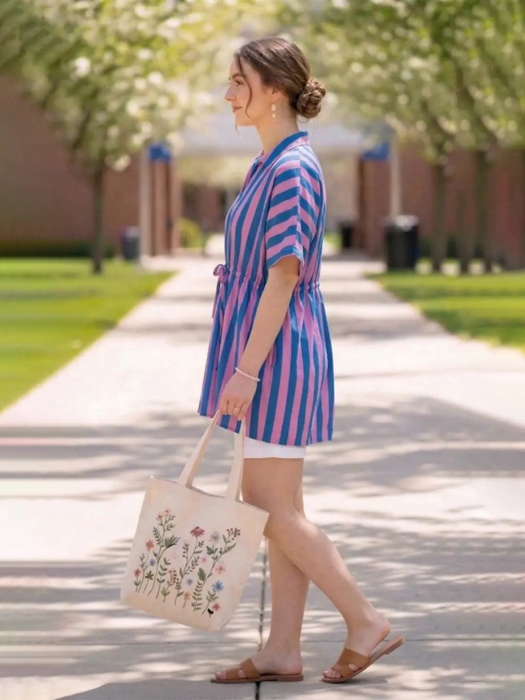 Drawstring waist printed cotton top