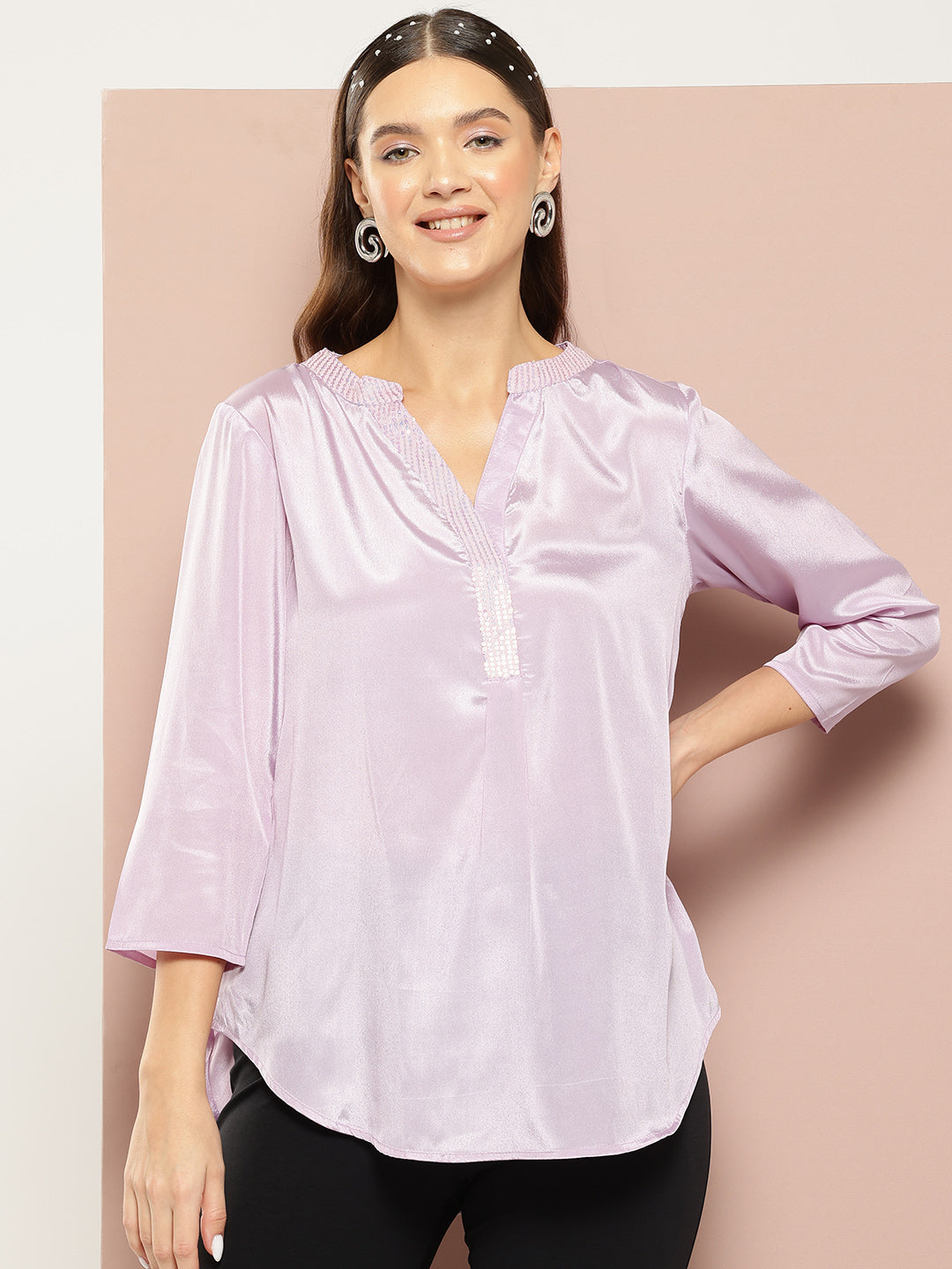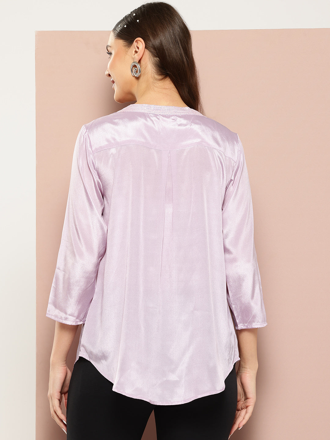 Festive party Lavender silk half placket shirt