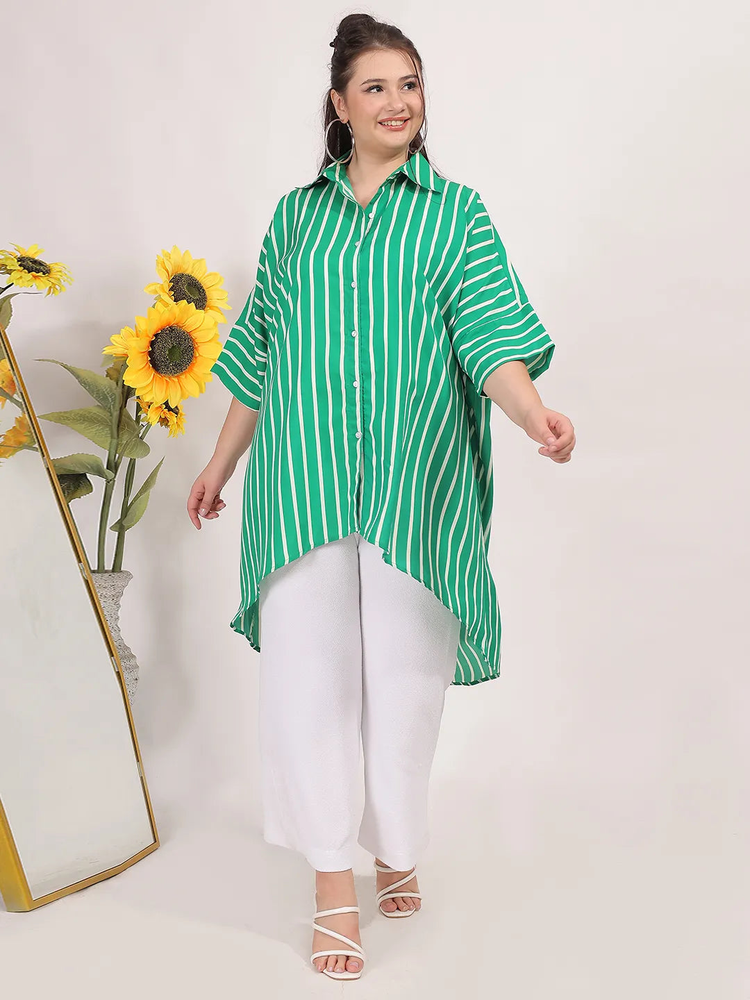 Green stripe oversized shirt