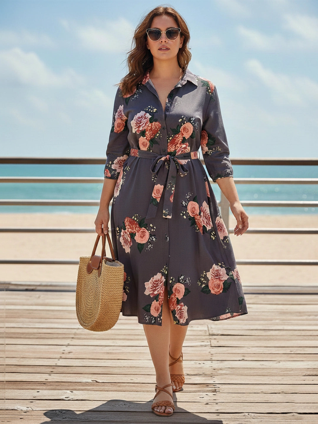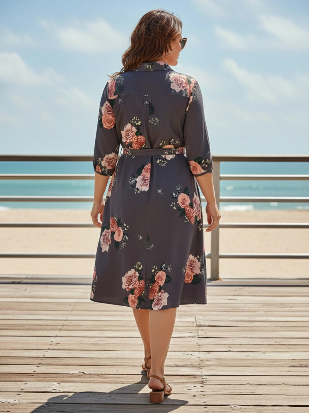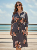 Grey floral shirt dress