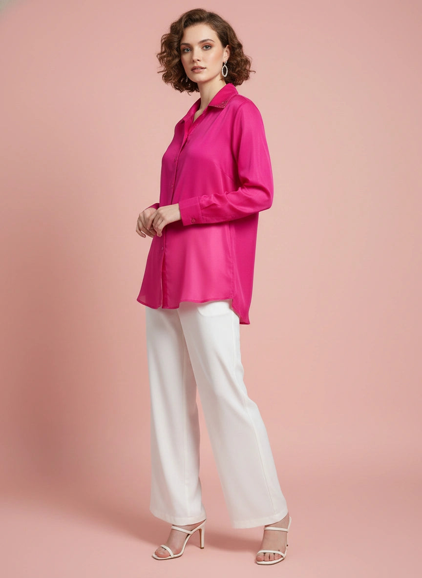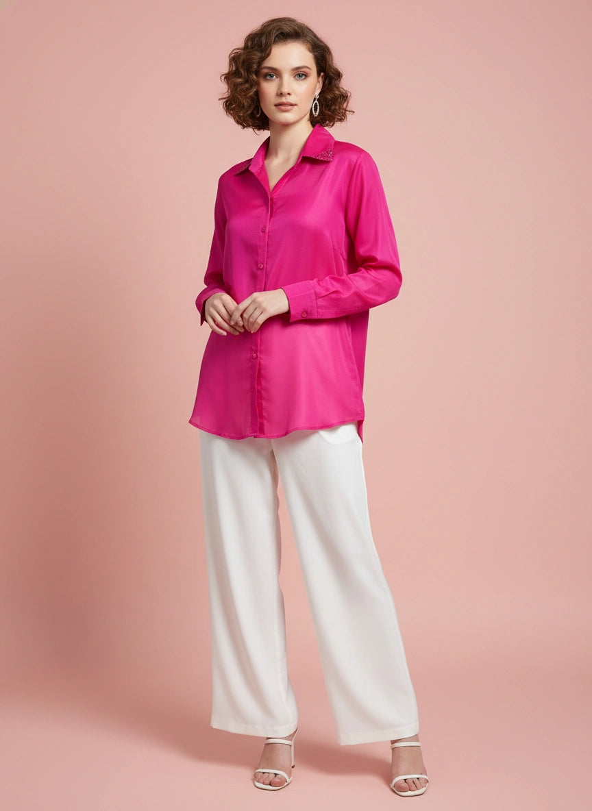 Magenta silk shirt with sequin embellishment