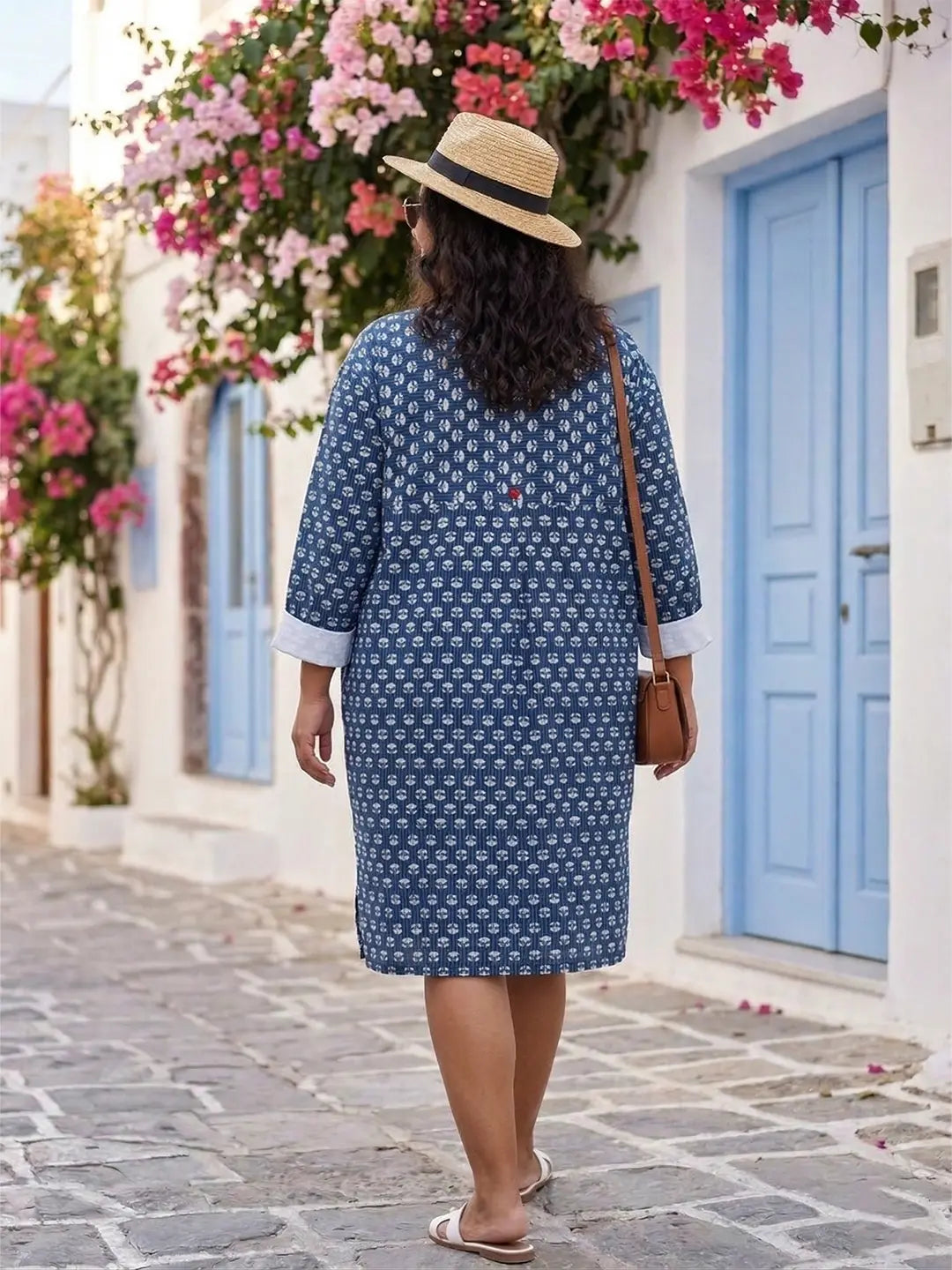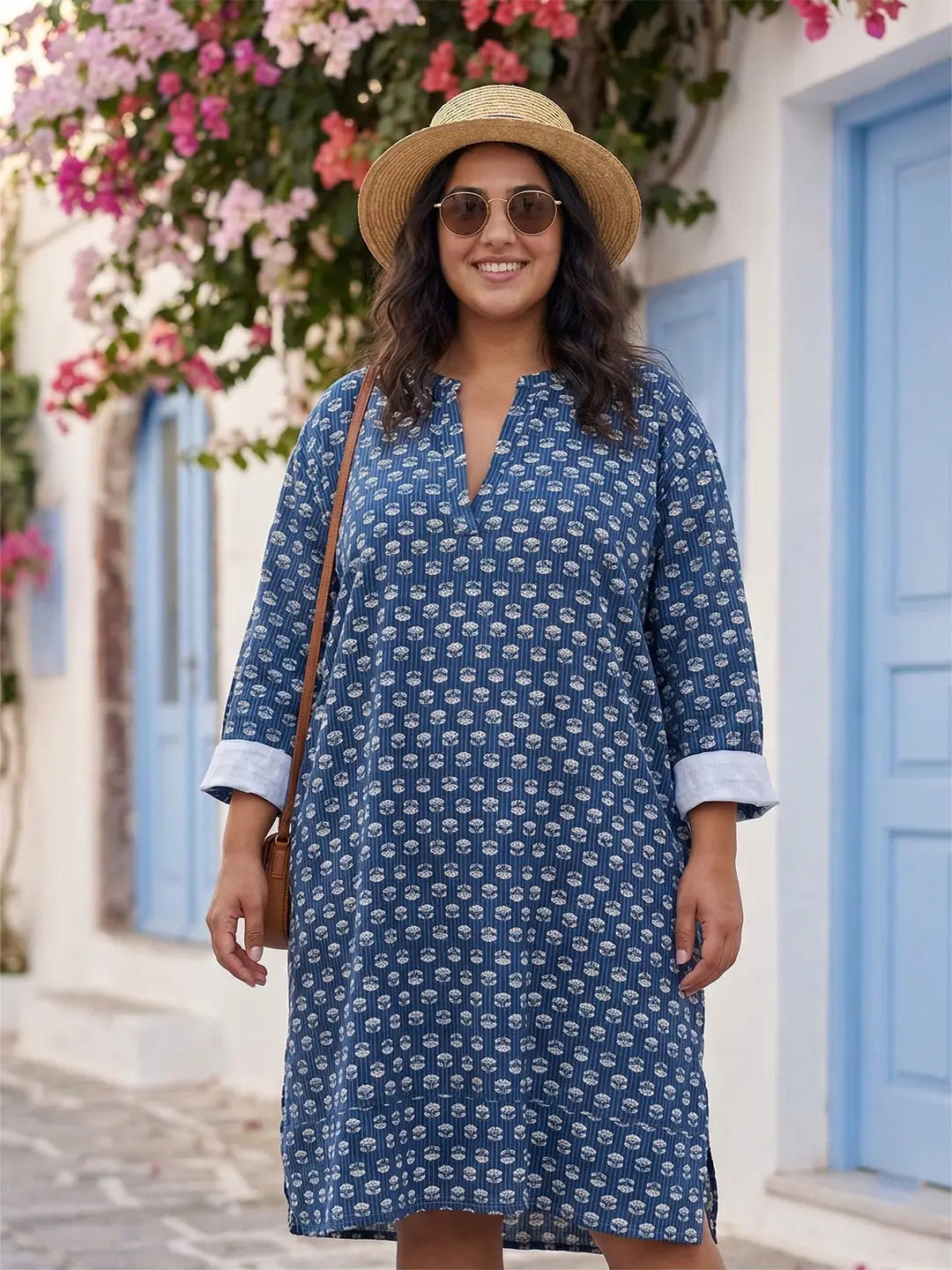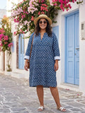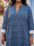 Mandarin collar half placket printed cotton shirt
