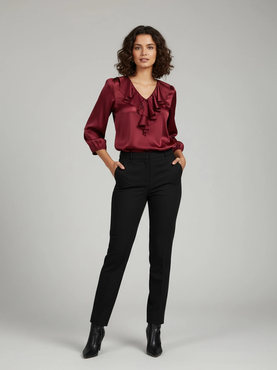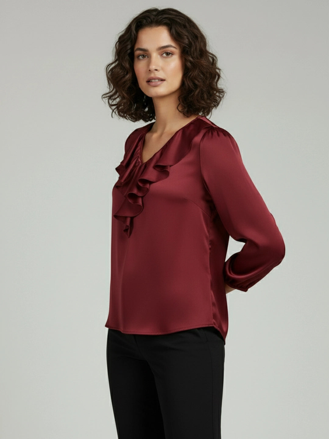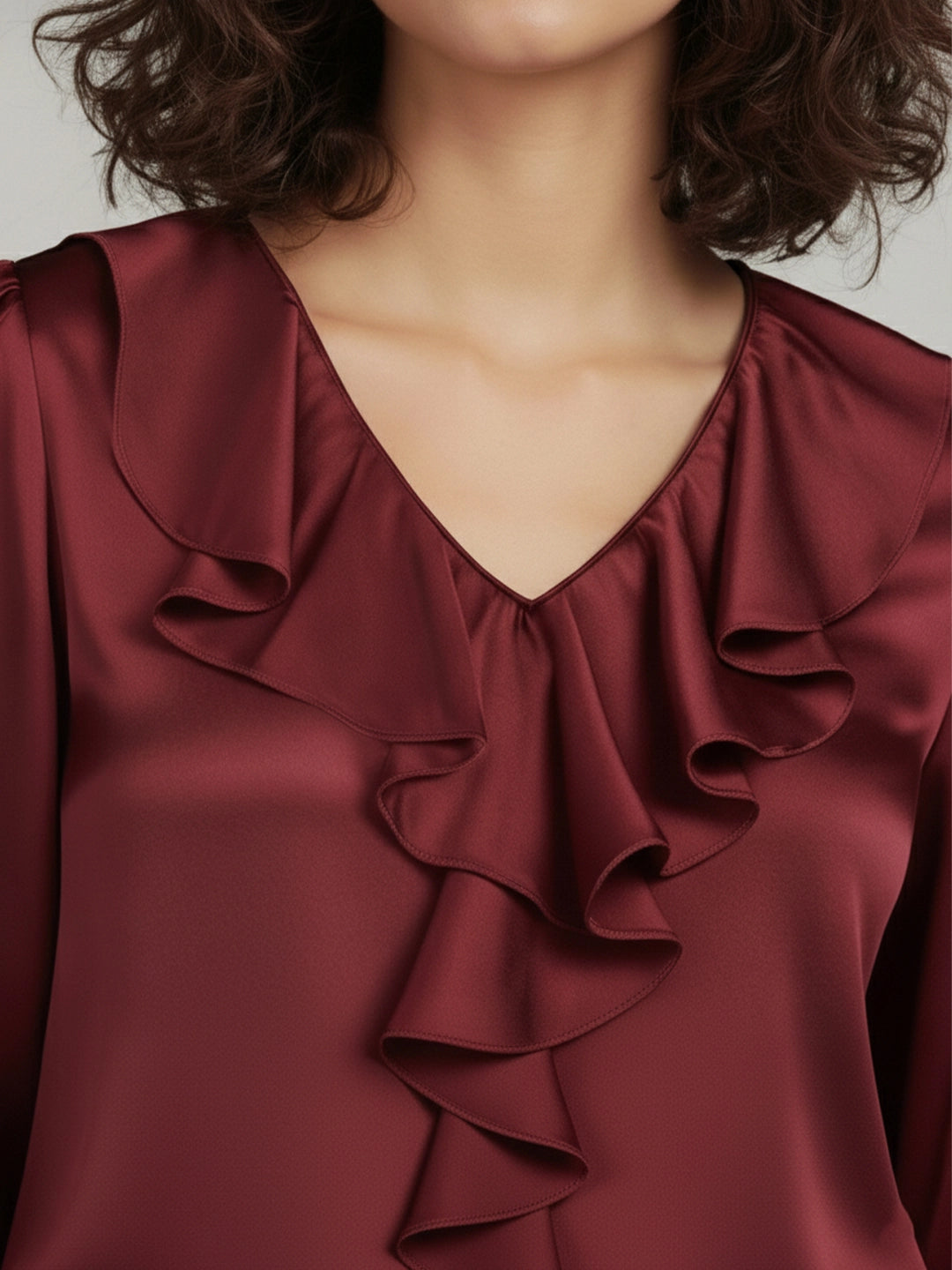 Maroon satin ruffle neck top