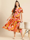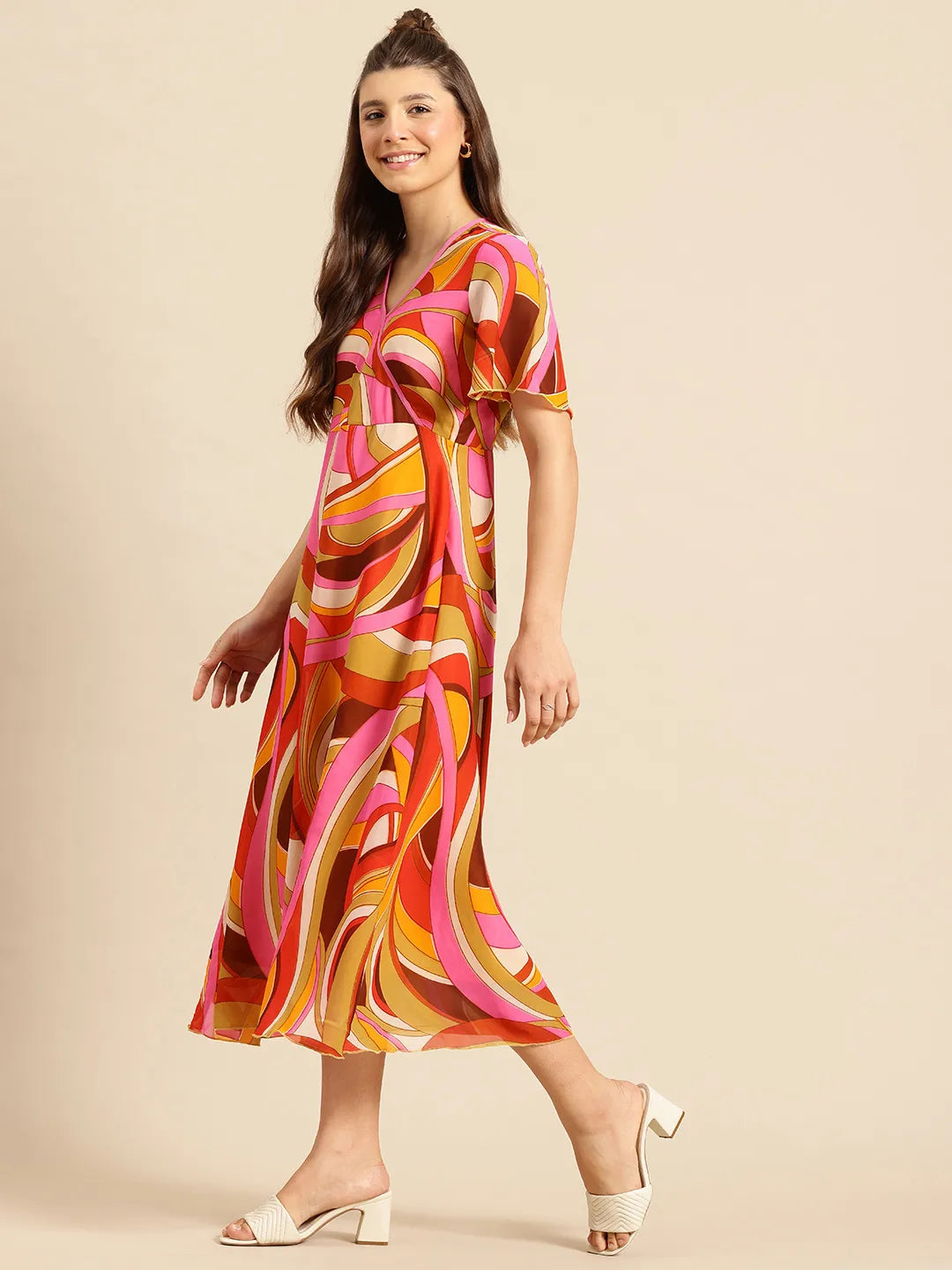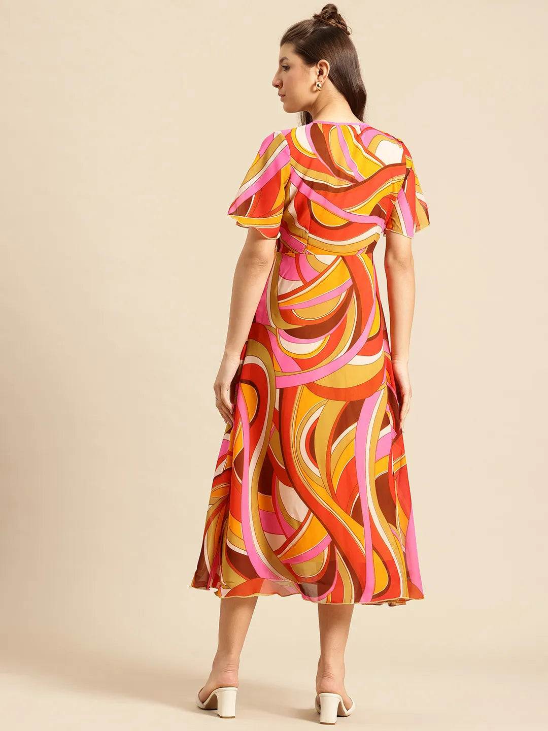 Multi Georgette Slim Fit Dress with Curved Hemline and With Lining