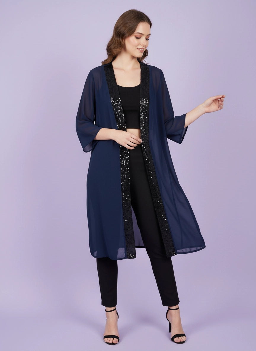 Navy georgette shrug with embellished sequins