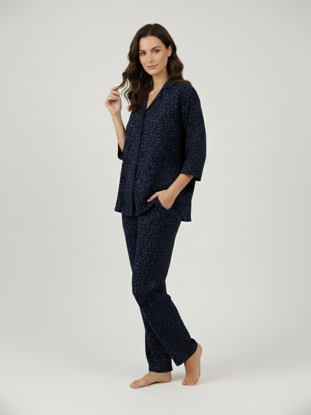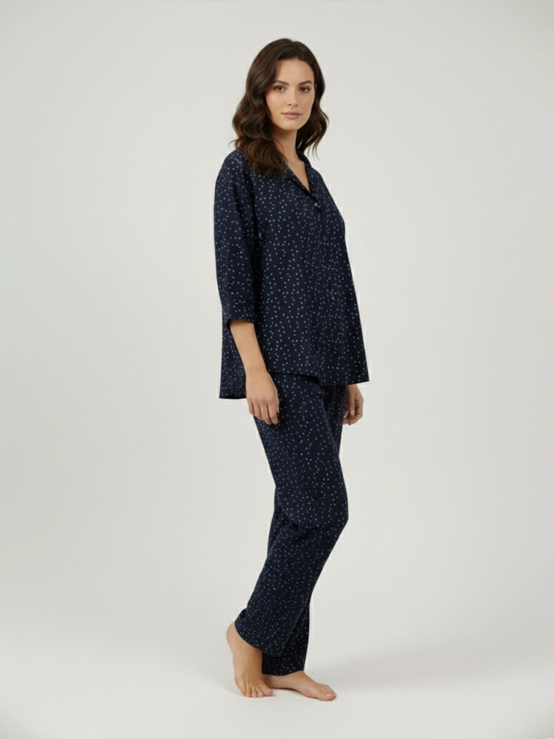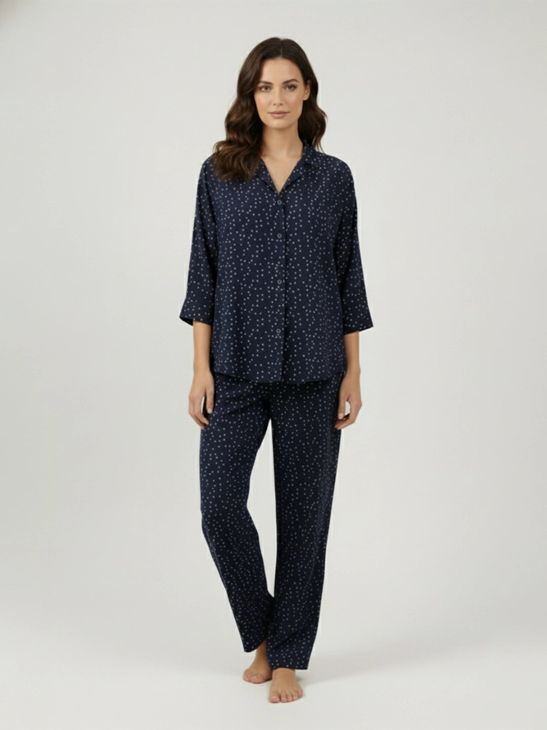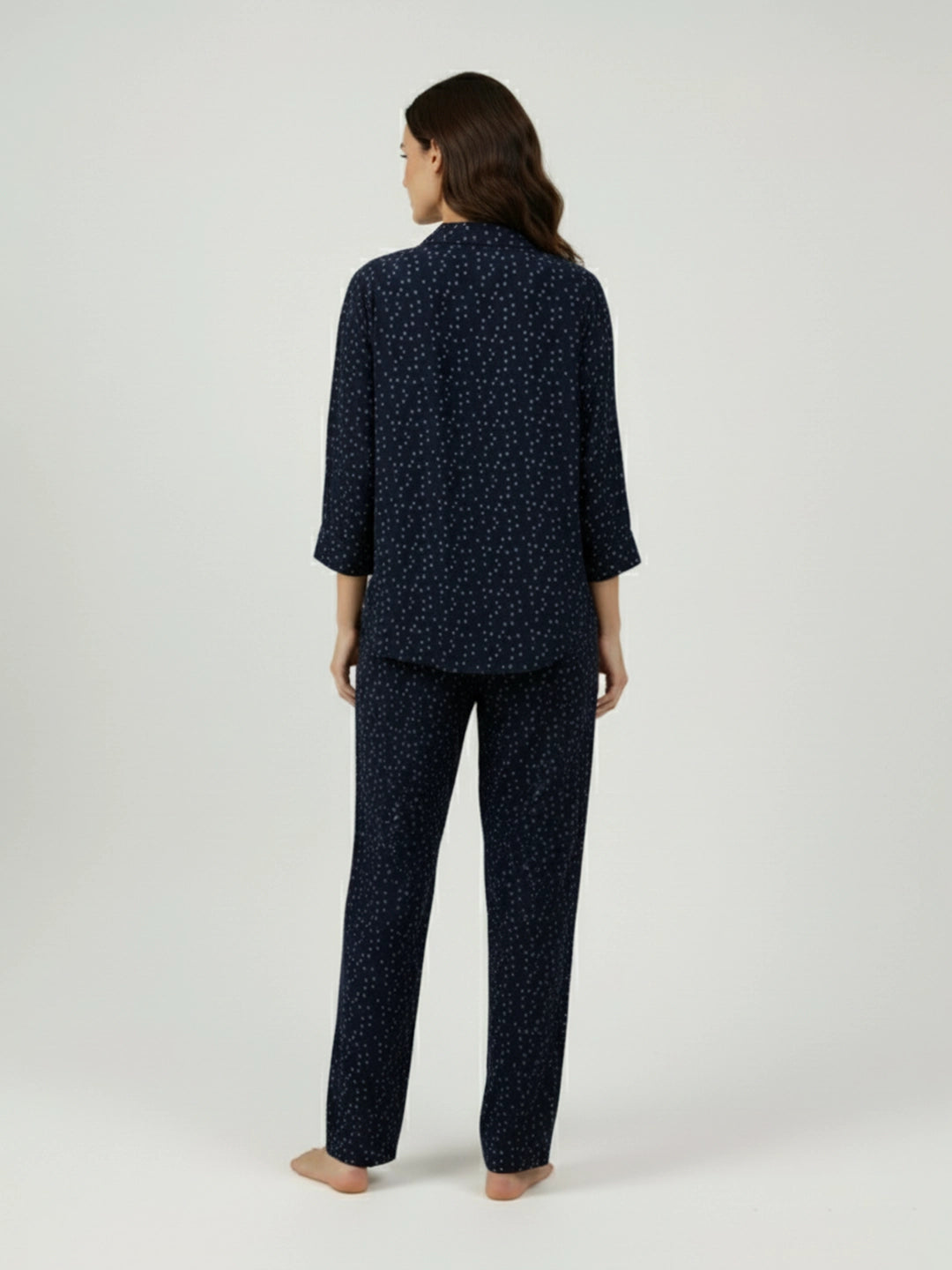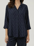 Navy printed notch collar shirt with trouser co-ord set