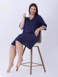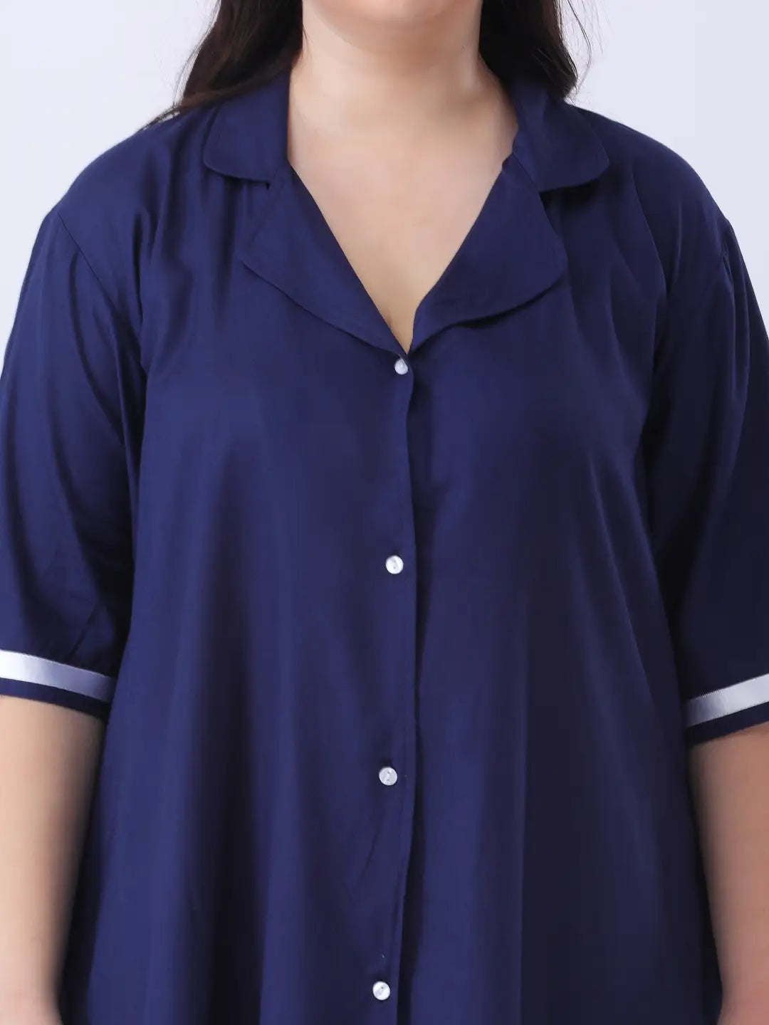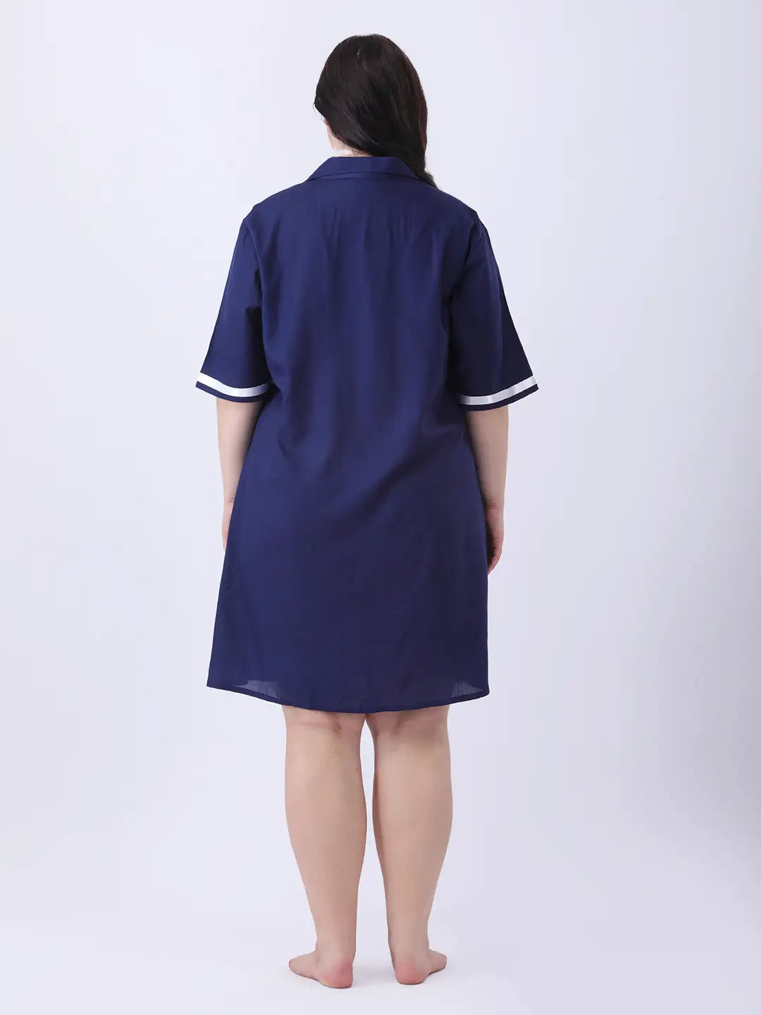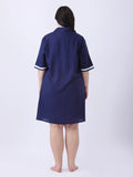 Navy rayon shirt dress with ribbon detailing in sleeve