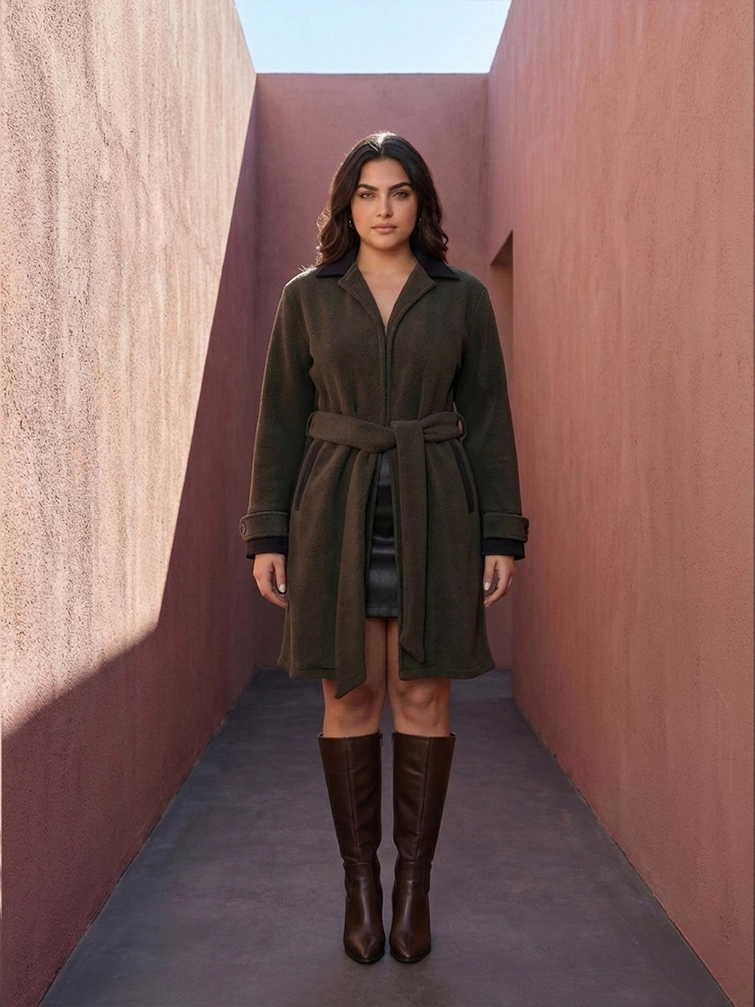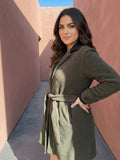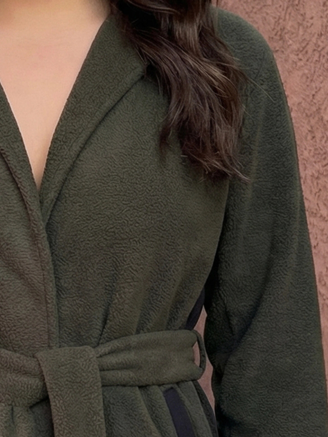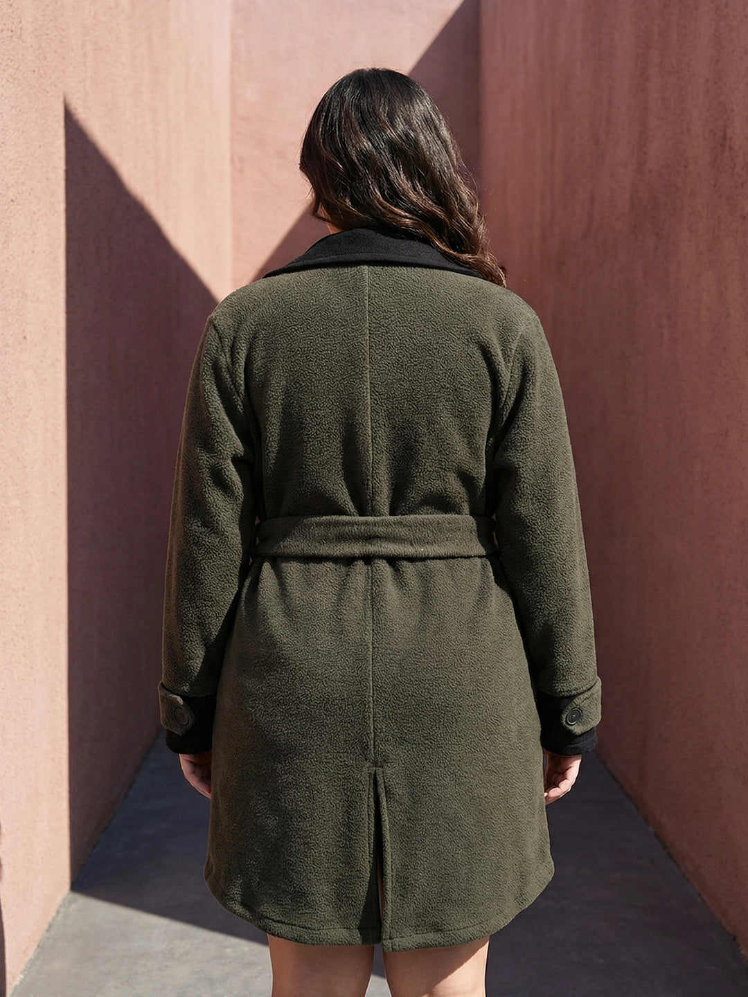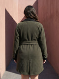 Olive fleece coat with belt