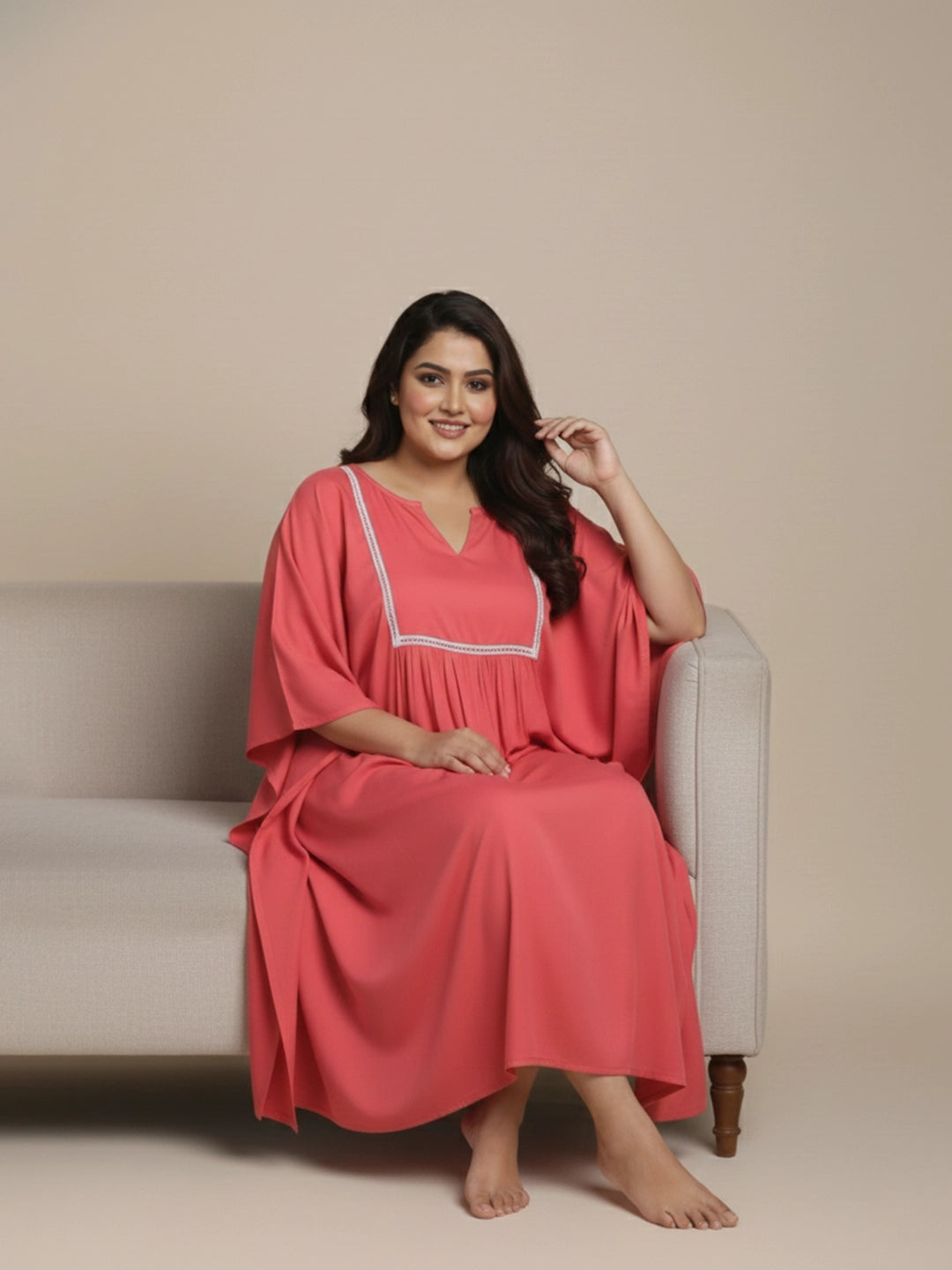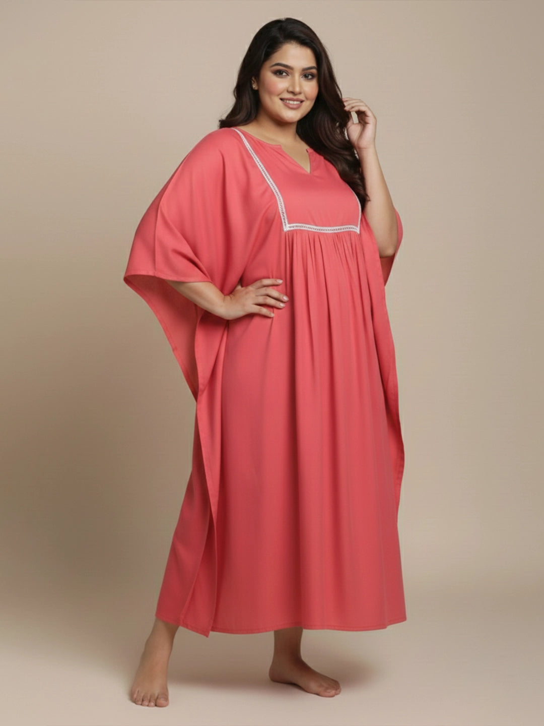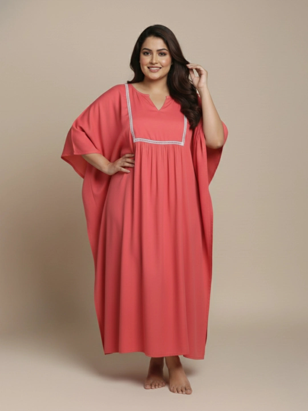 Peach rayon kaftan night dress