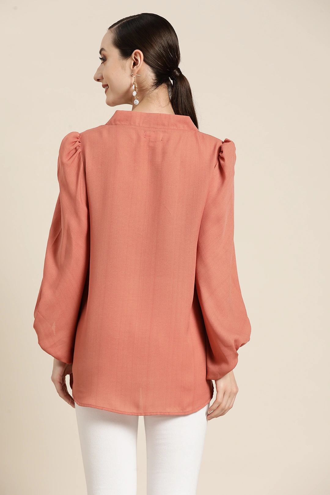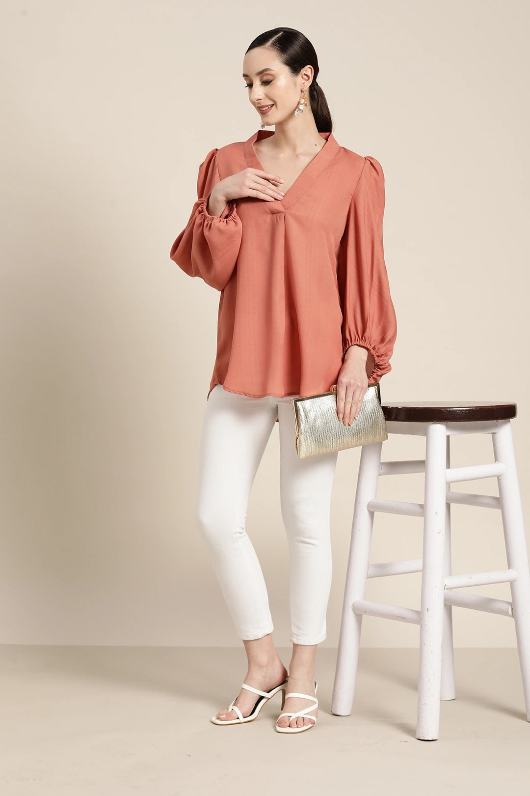 Peach V-neck baloon sleeve top