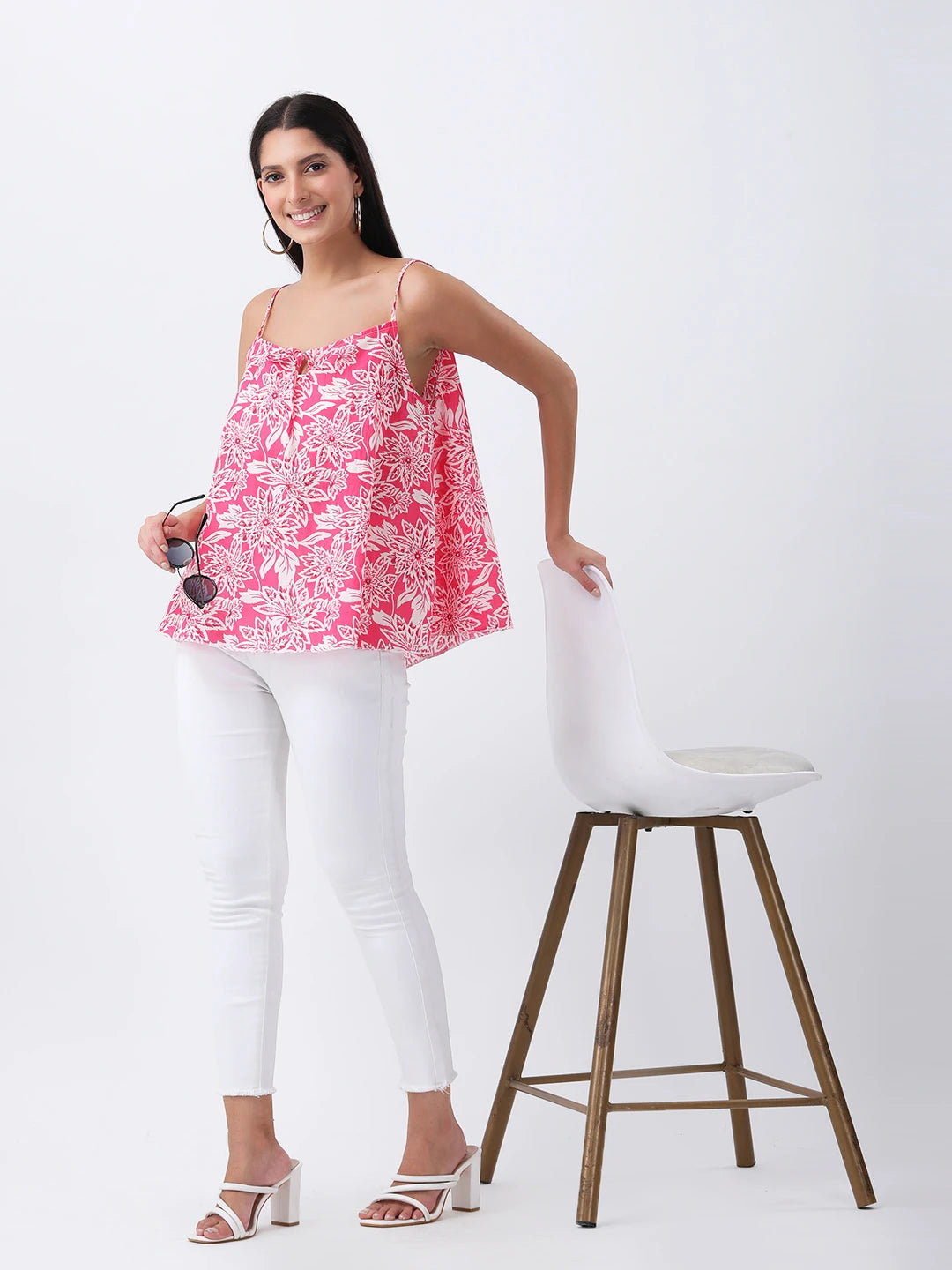 Pink floral print spaghetti top