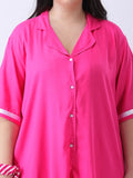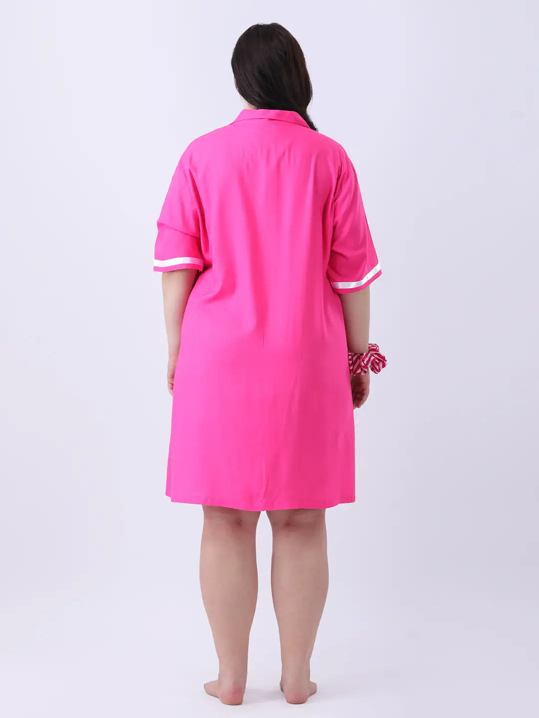 Pink rayon shirt dress with ribbon detailing in sleeve