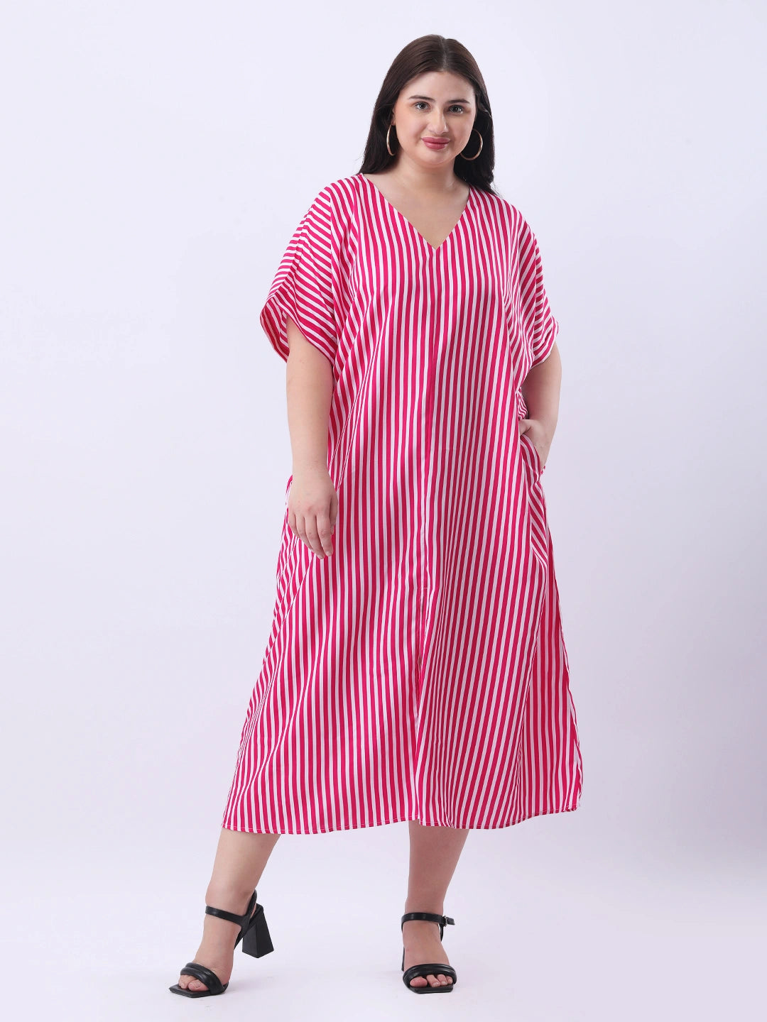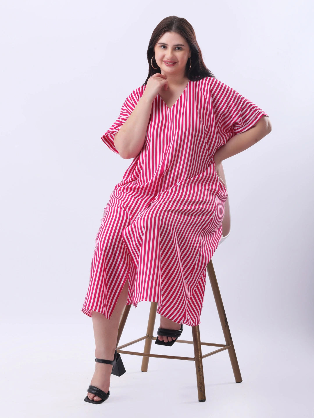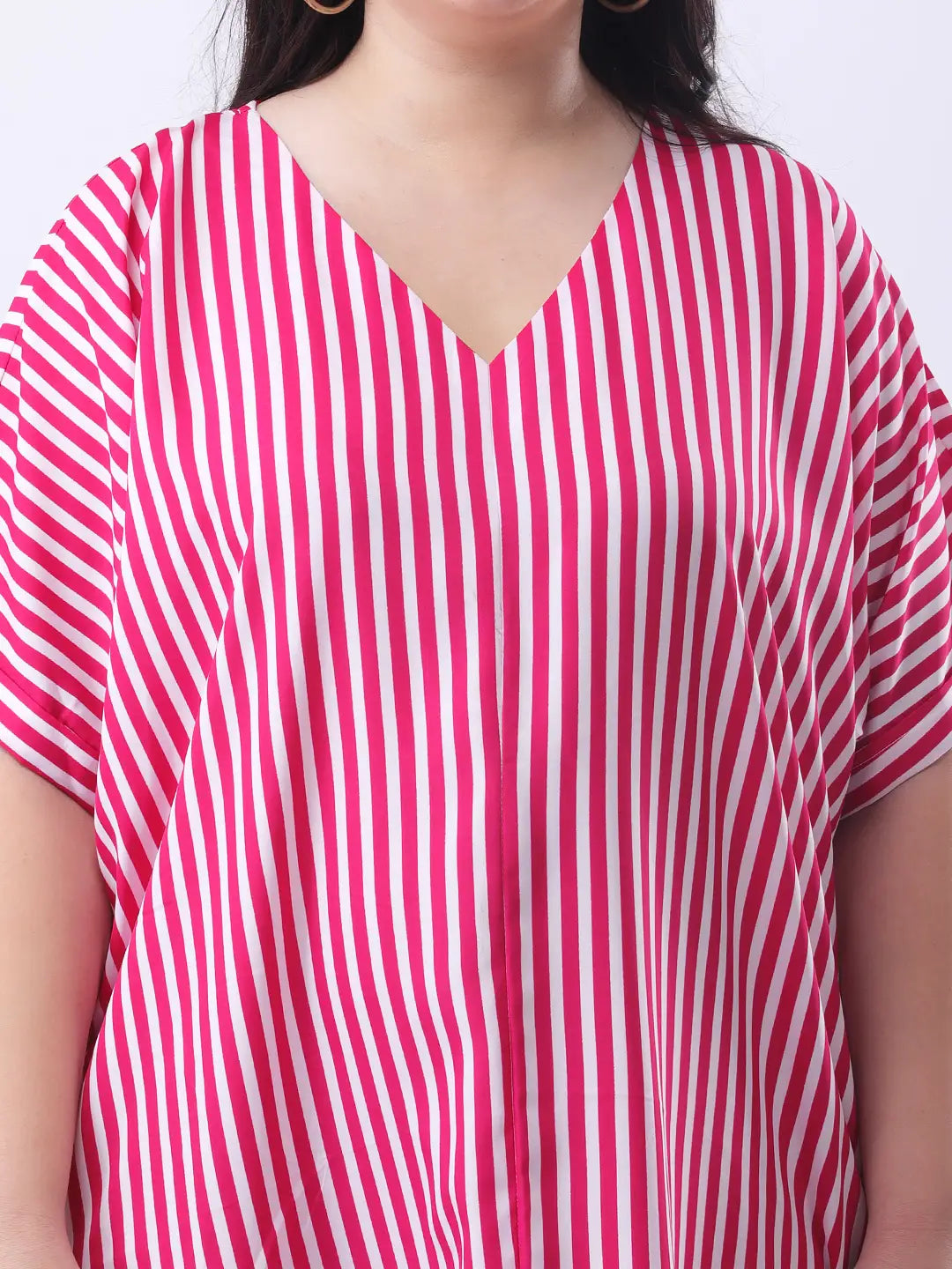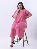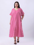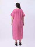 Pink stripe loose fit dress with front slit