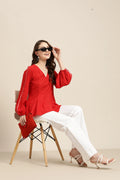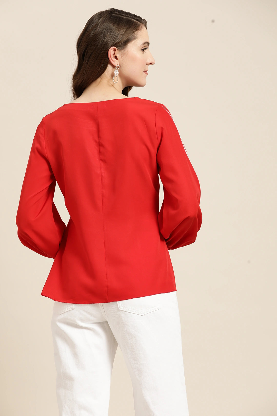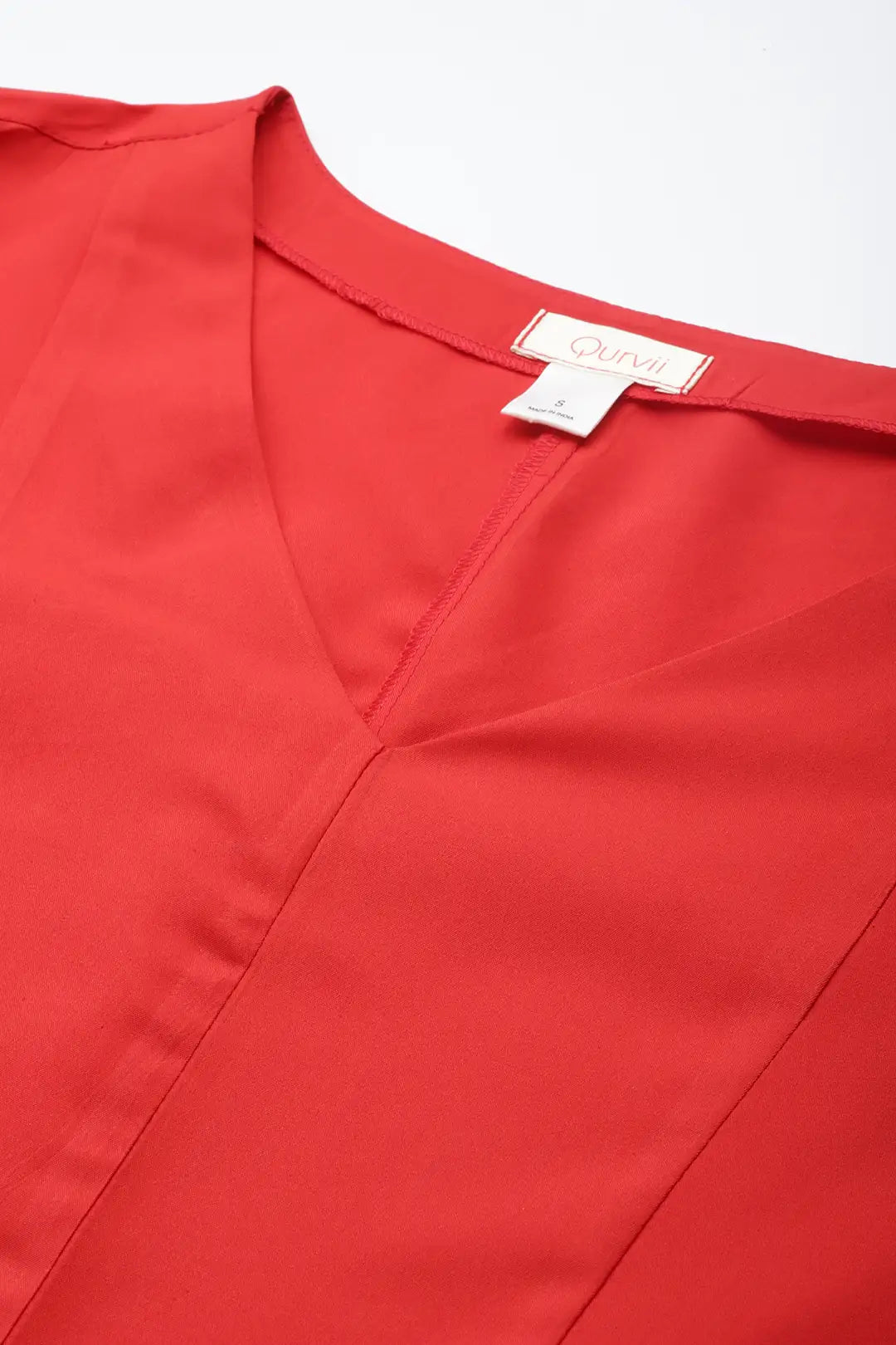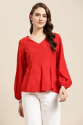 Solid Dark Red Regular Fit V Neck Full  Crepe Top