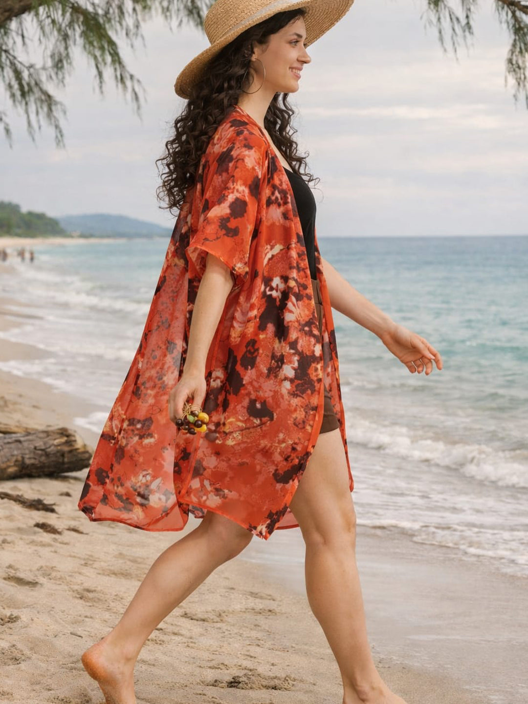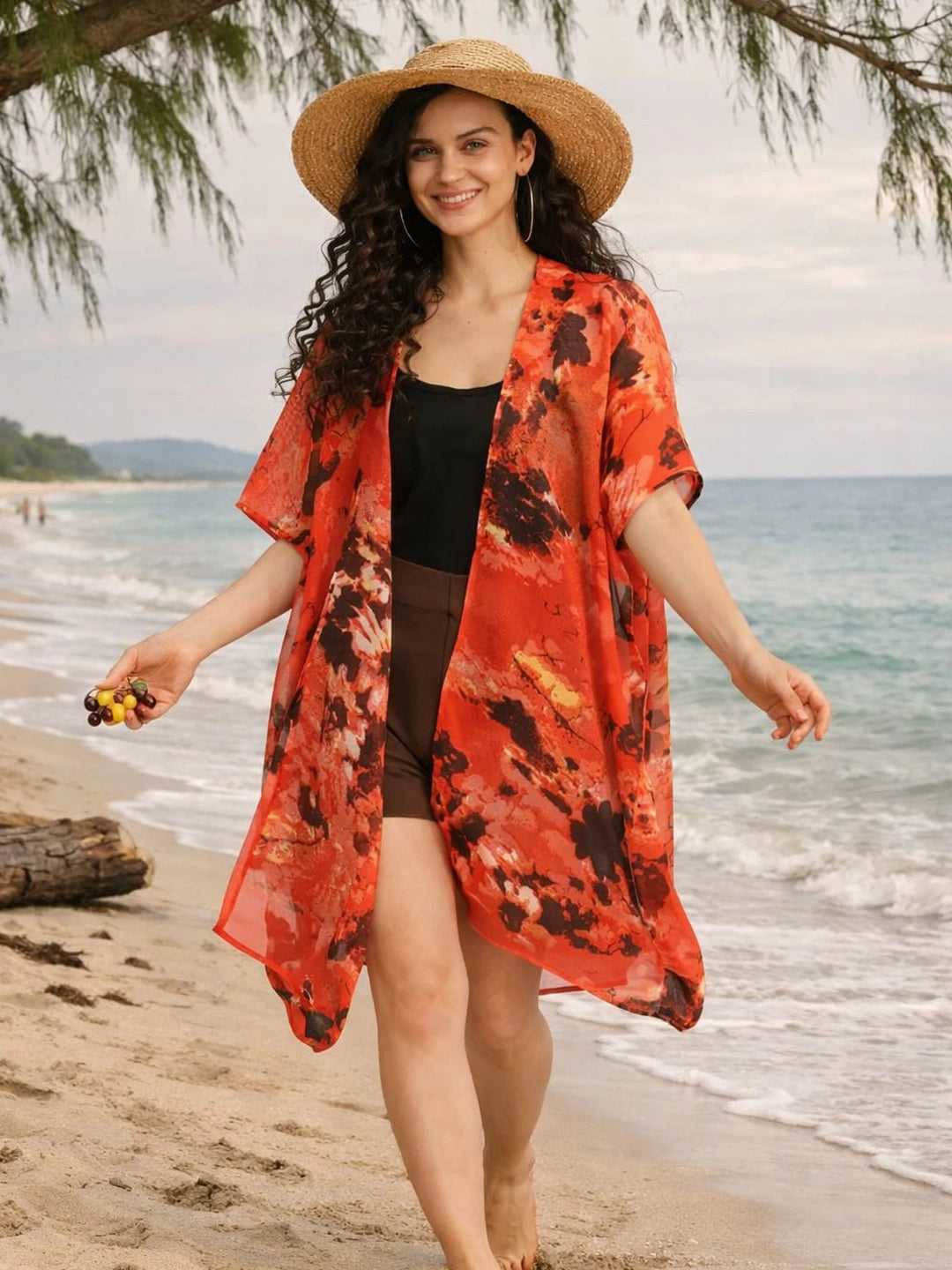 Red abstract print shrug