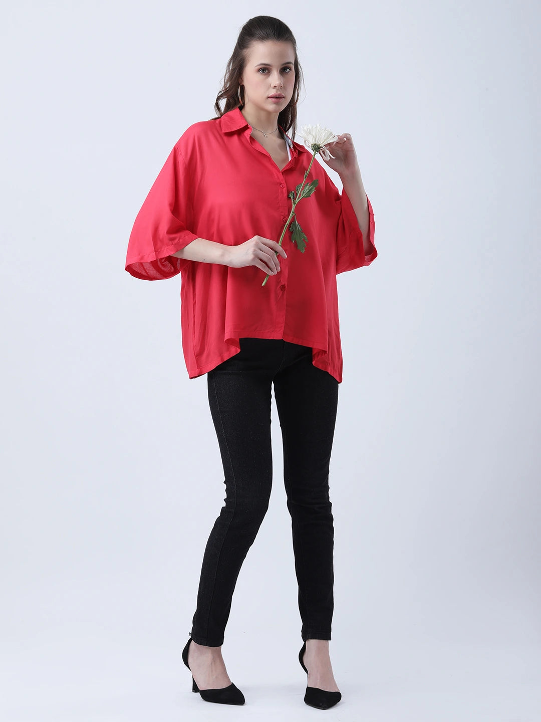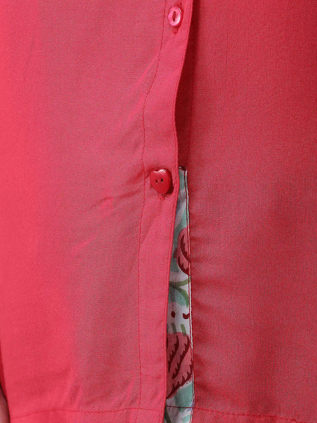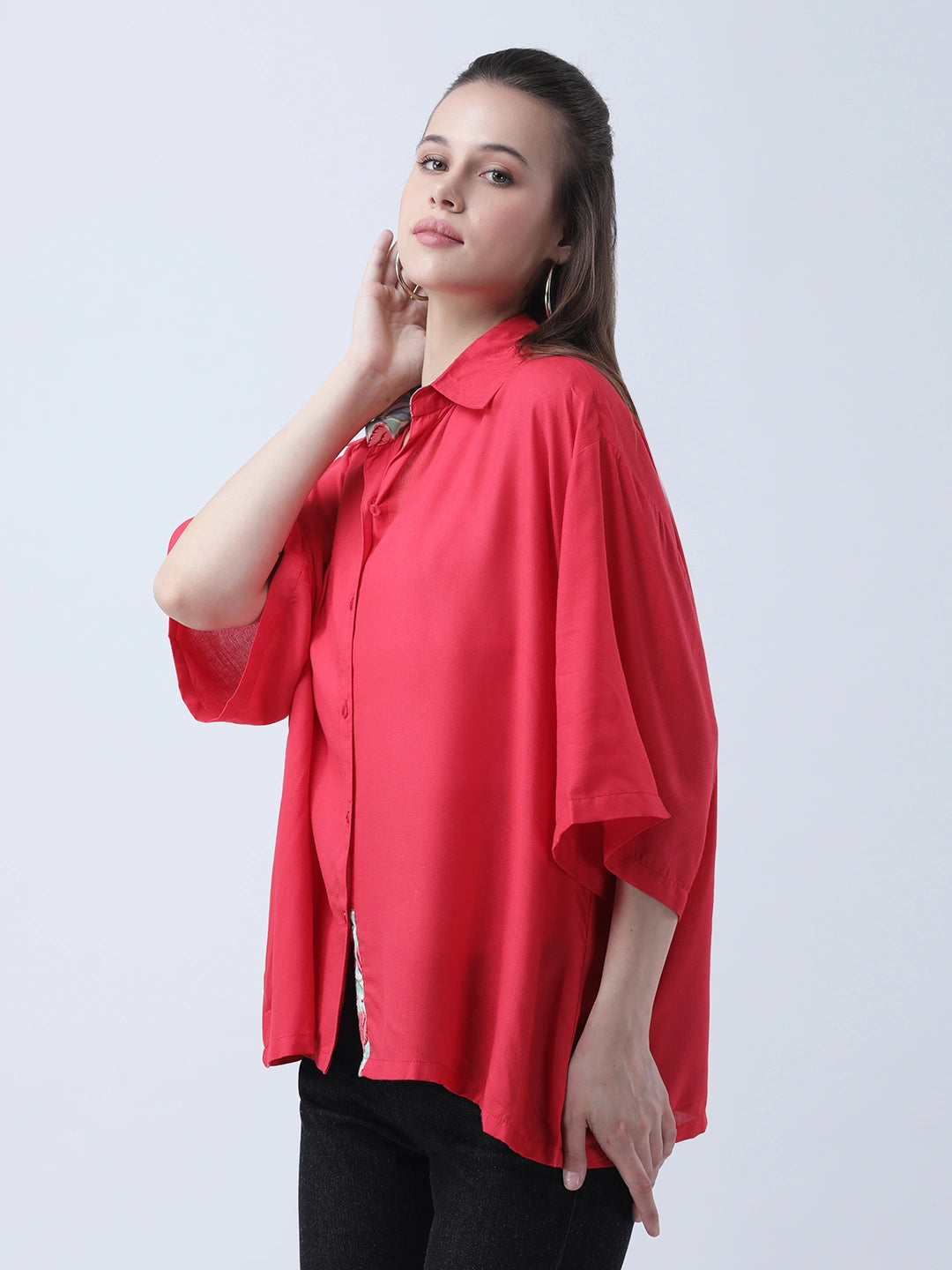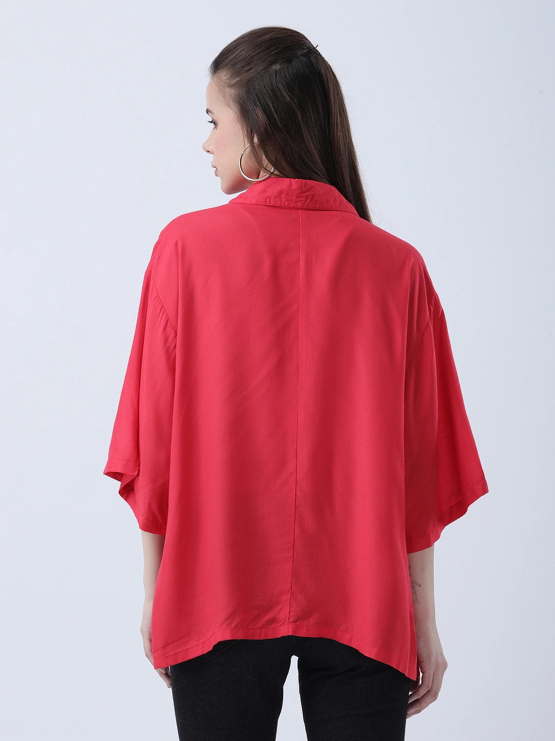 Red rayon oversized shirt with block print embelishments