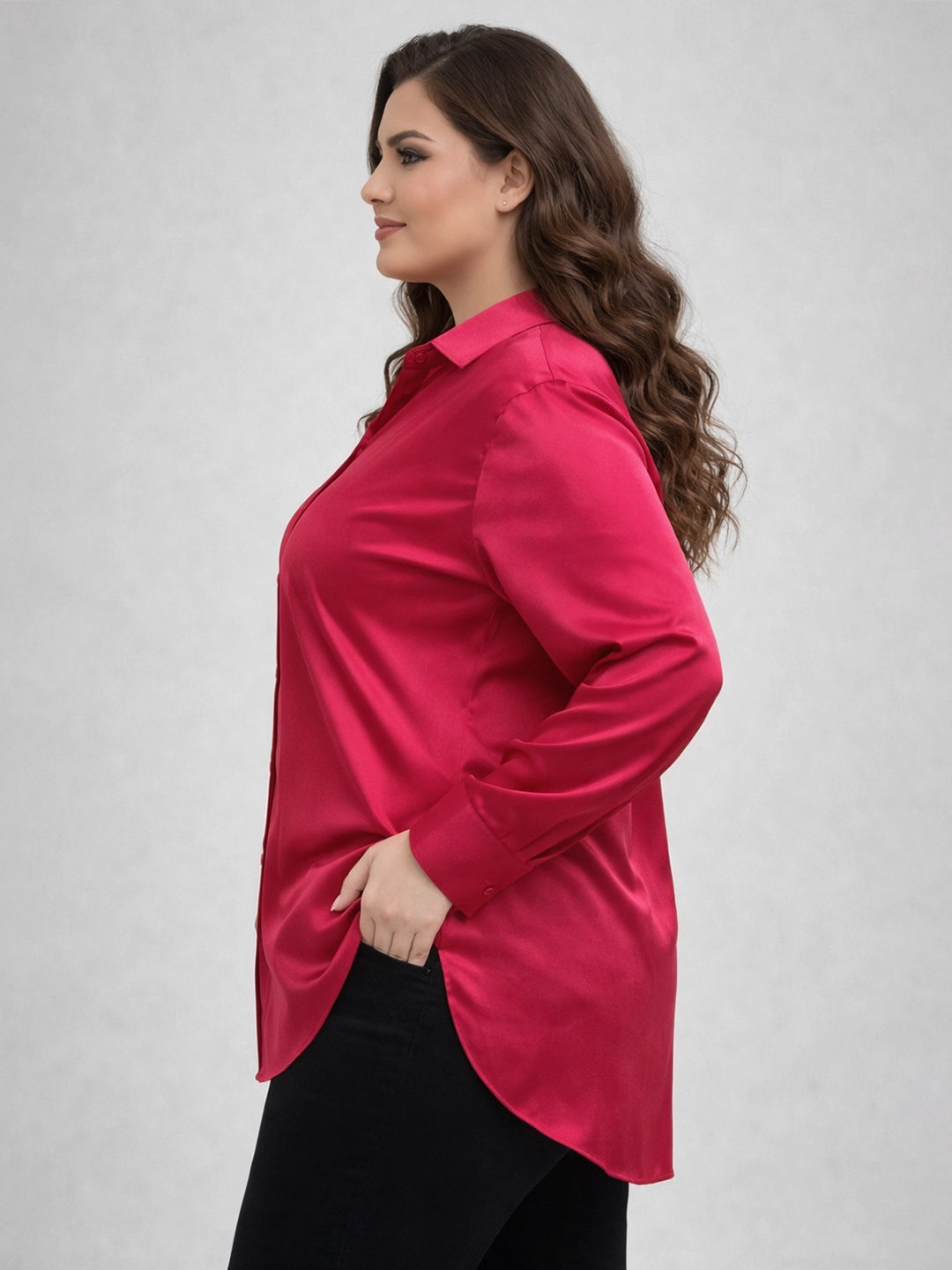 Ruby red silk blend shirt