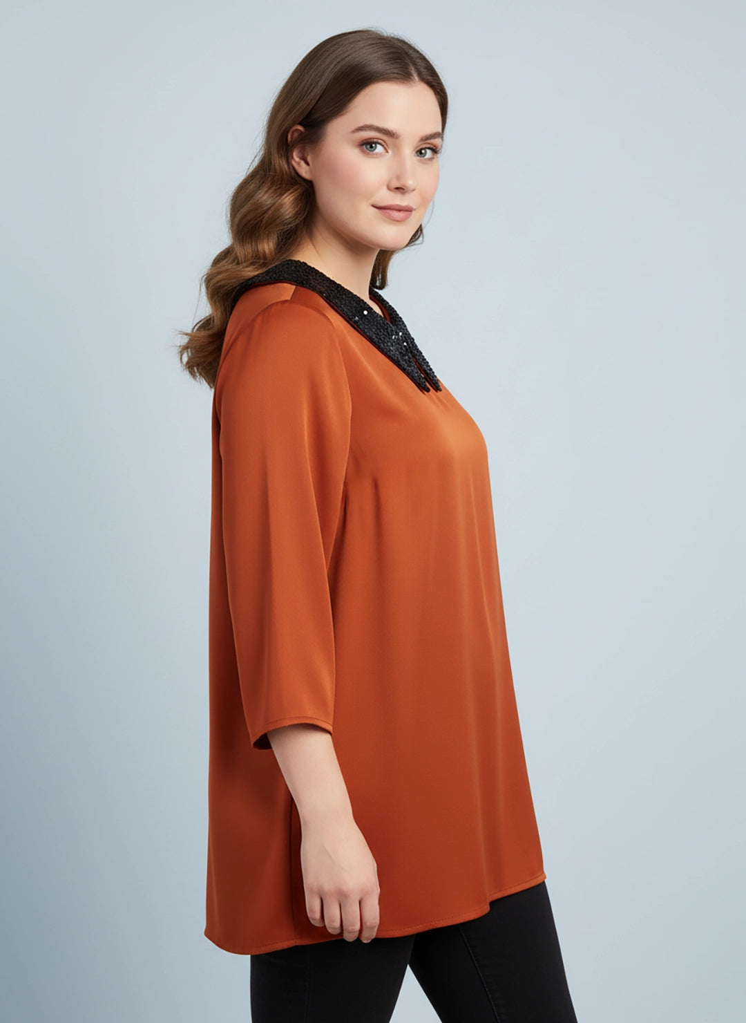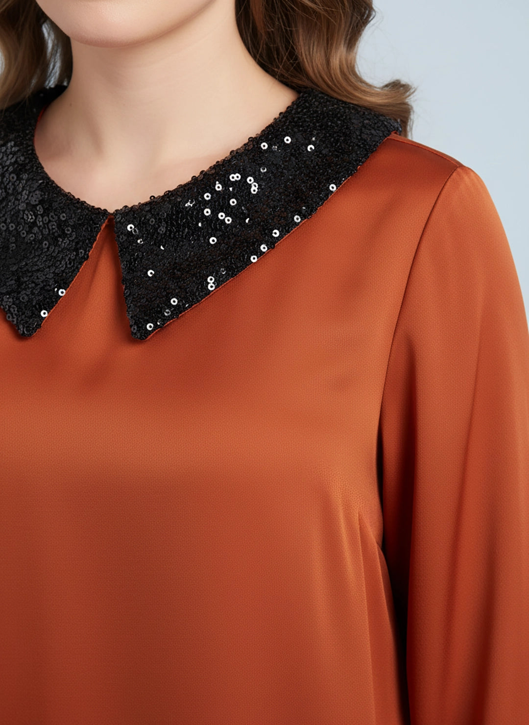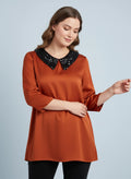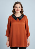 Sequin collar satin top