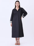 Solid Polplin Dress with printed cuff detailing in sleeve