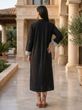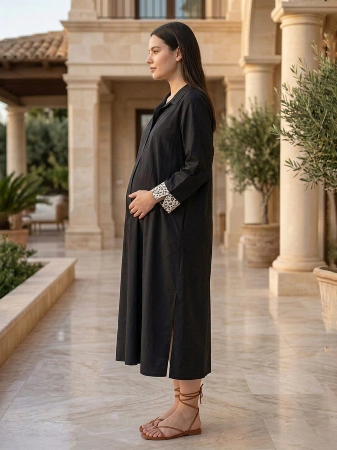 Solid Polplin Dress with printed cuff detailing in sleeve