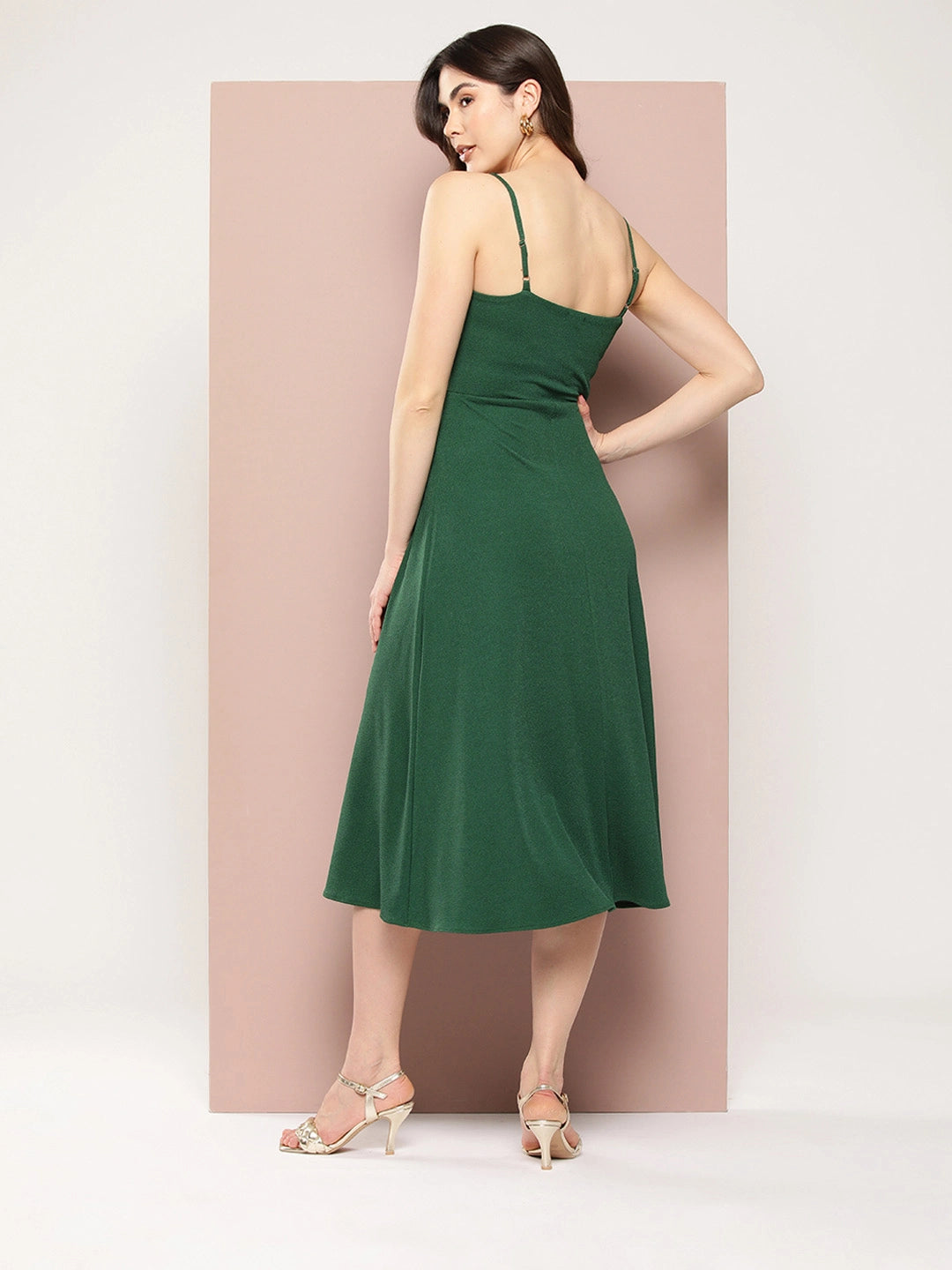 Stylish Bottle green midi dress.