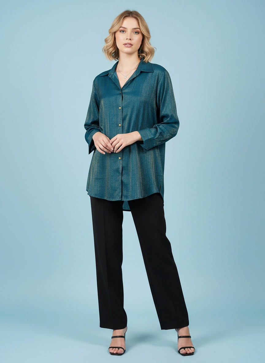 Teal gold zari shirt with cuff sleeves