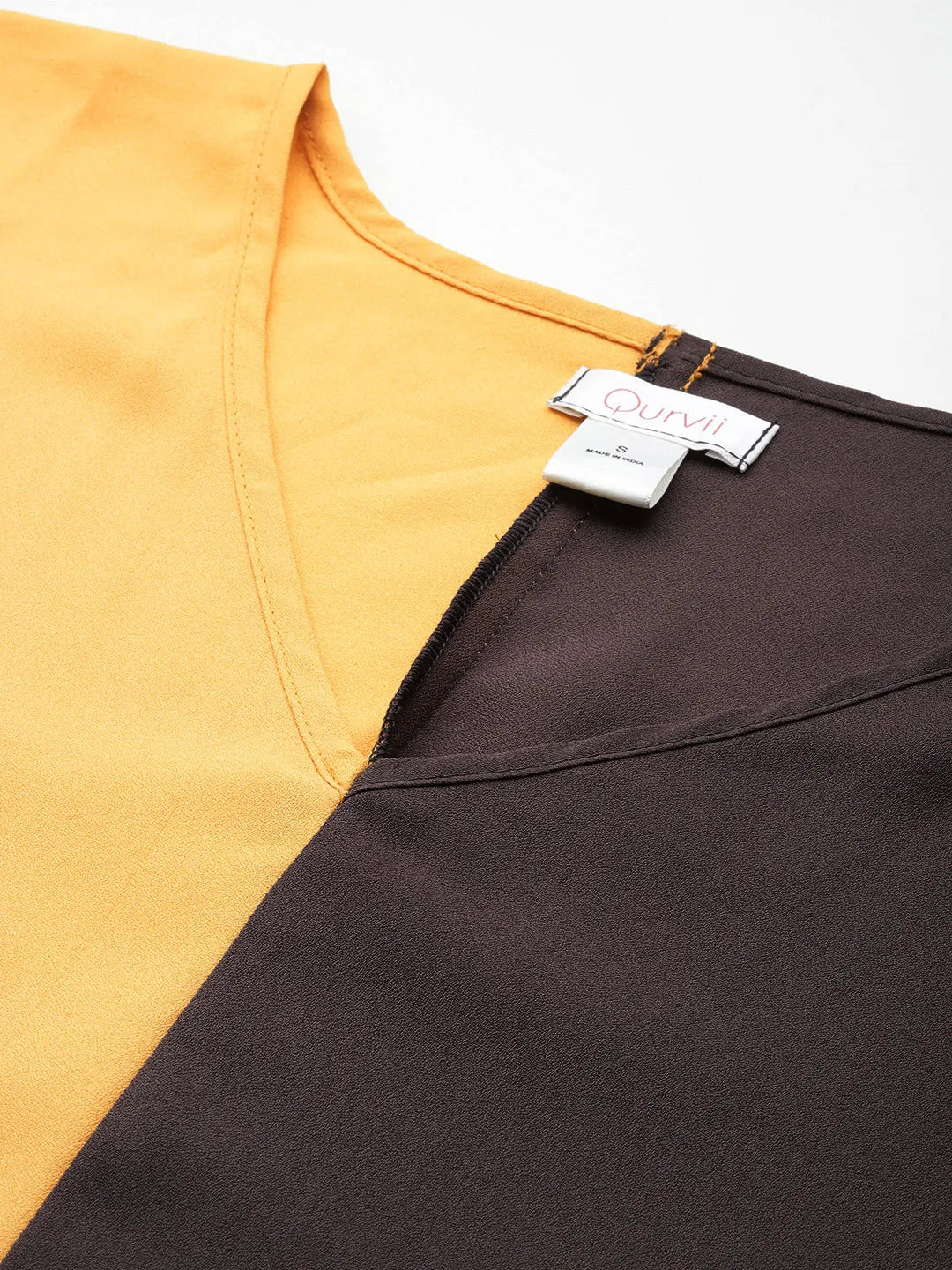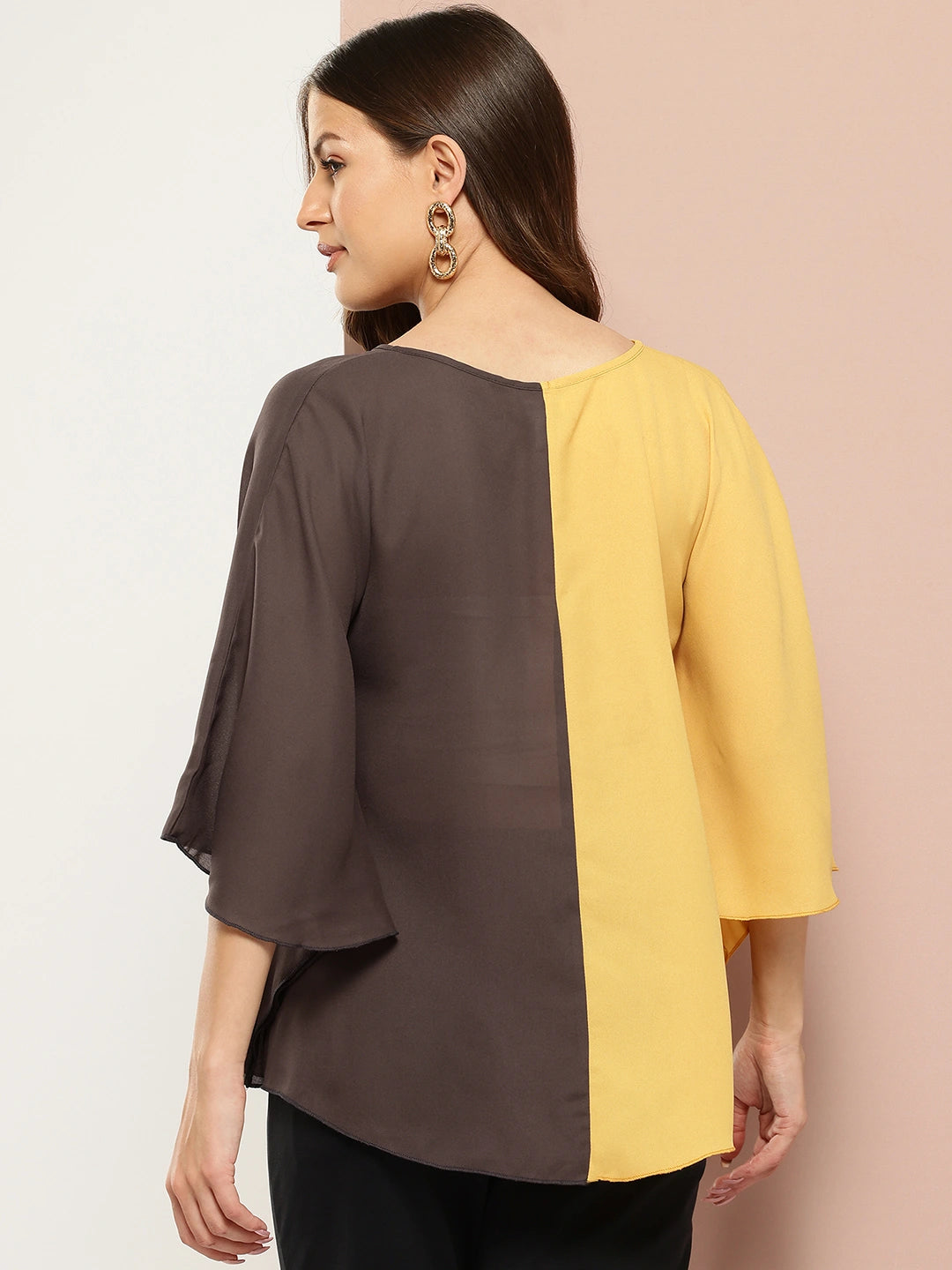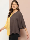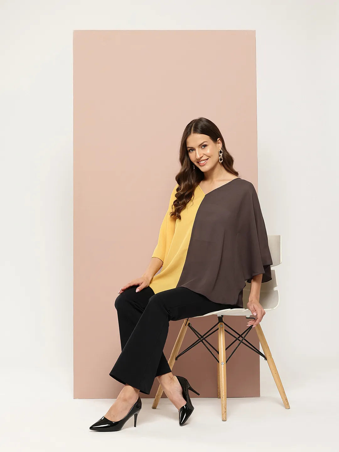 V-Shape Hemline Color Block Kimono Sleeves Top