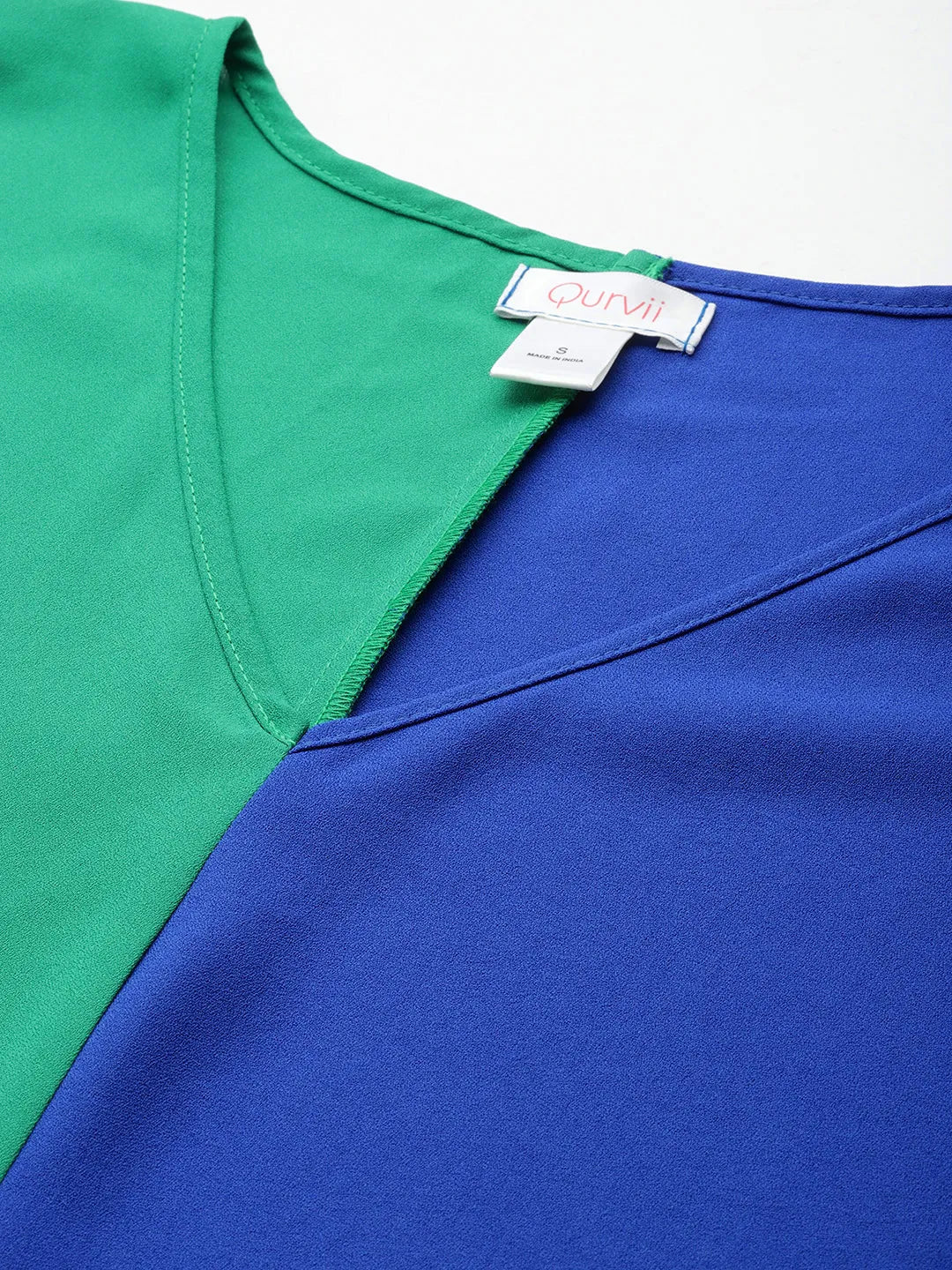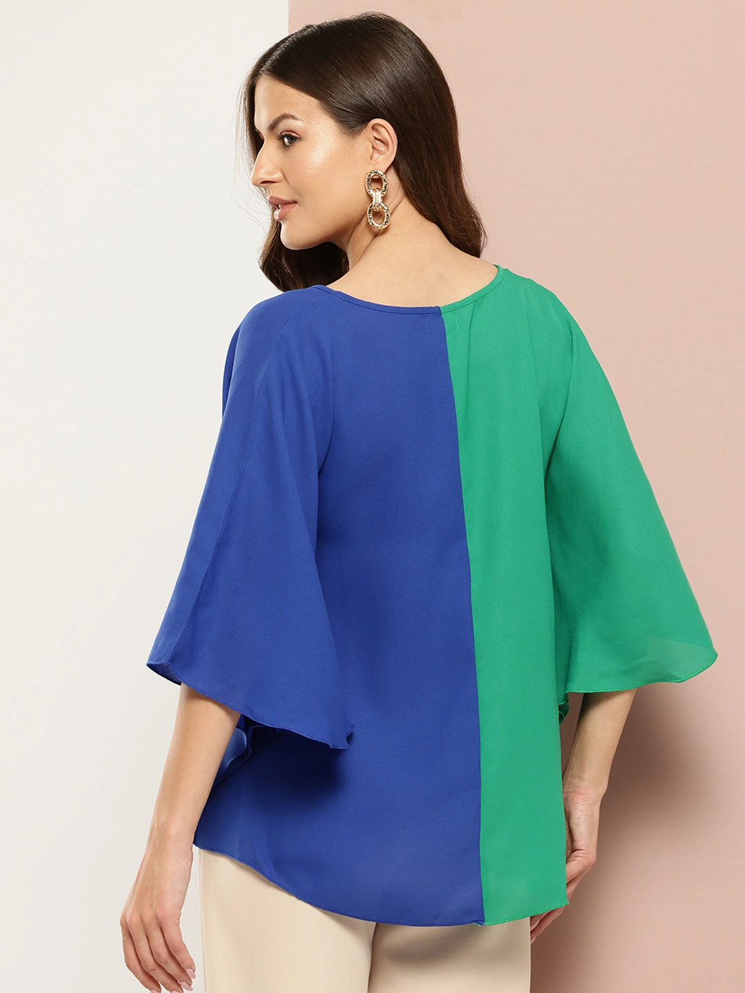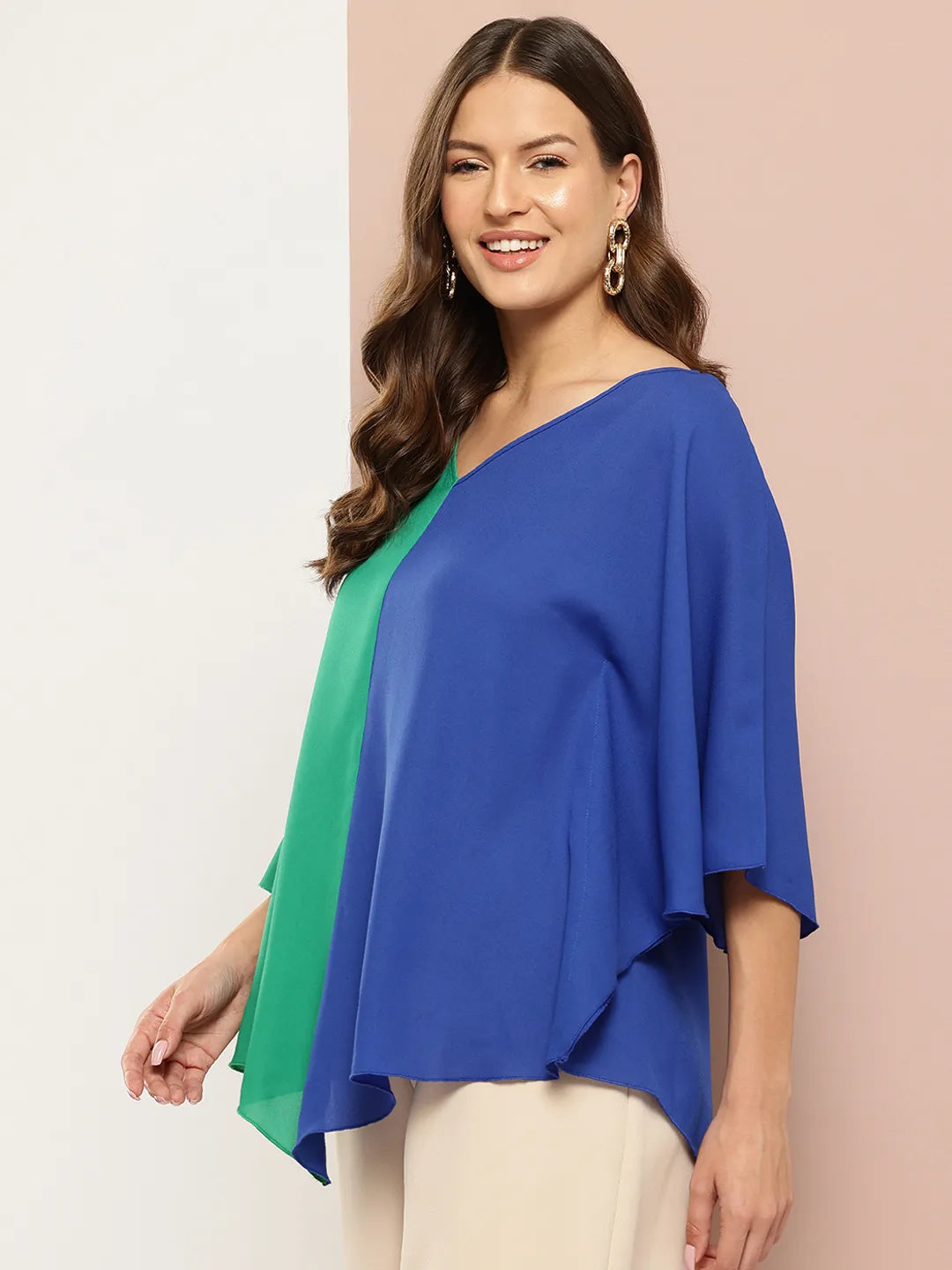 V-Shape Hemline Color Block Kimono Sleeves Top