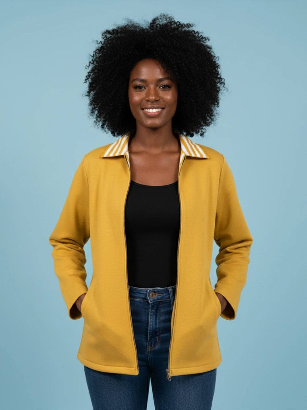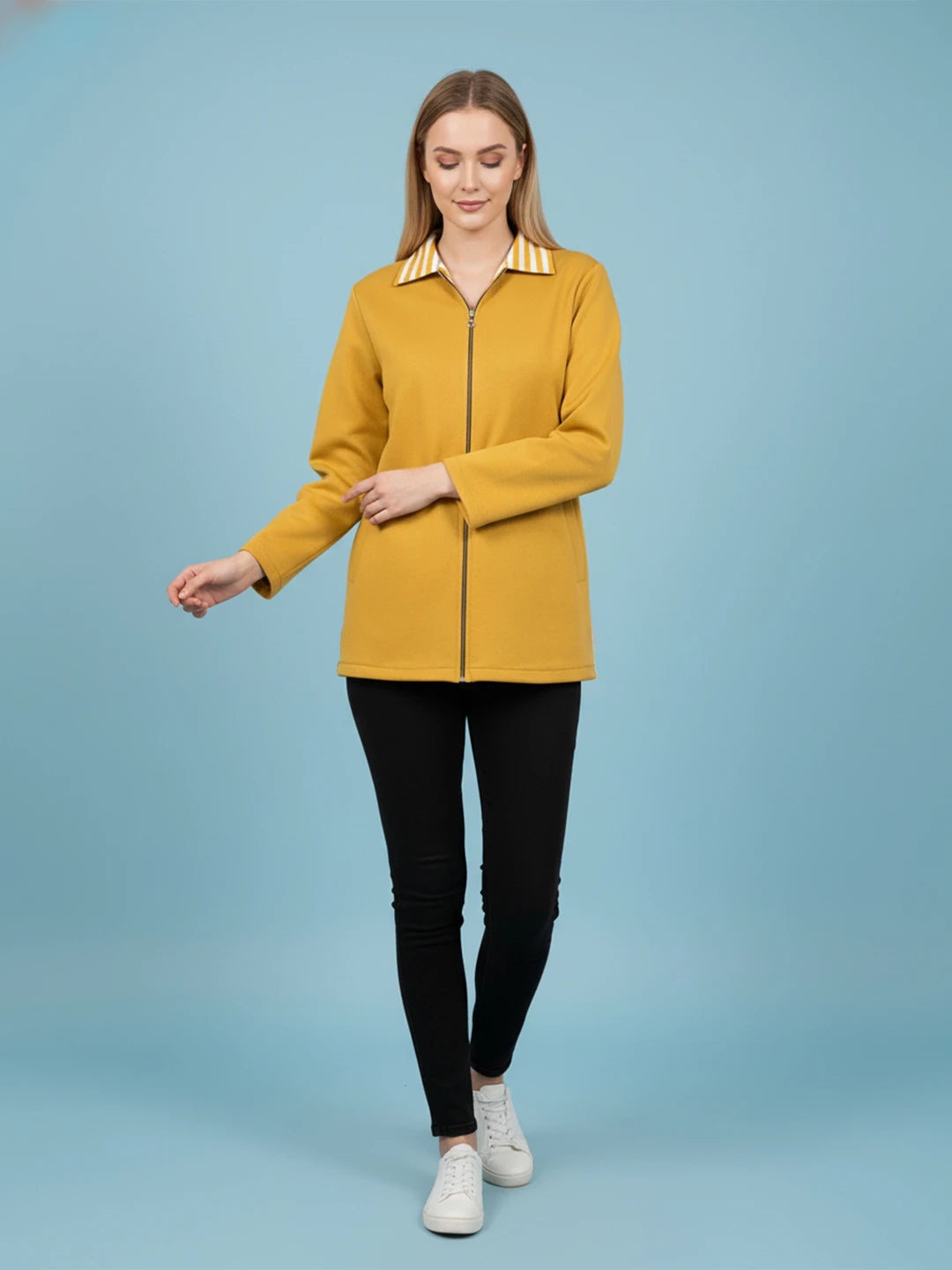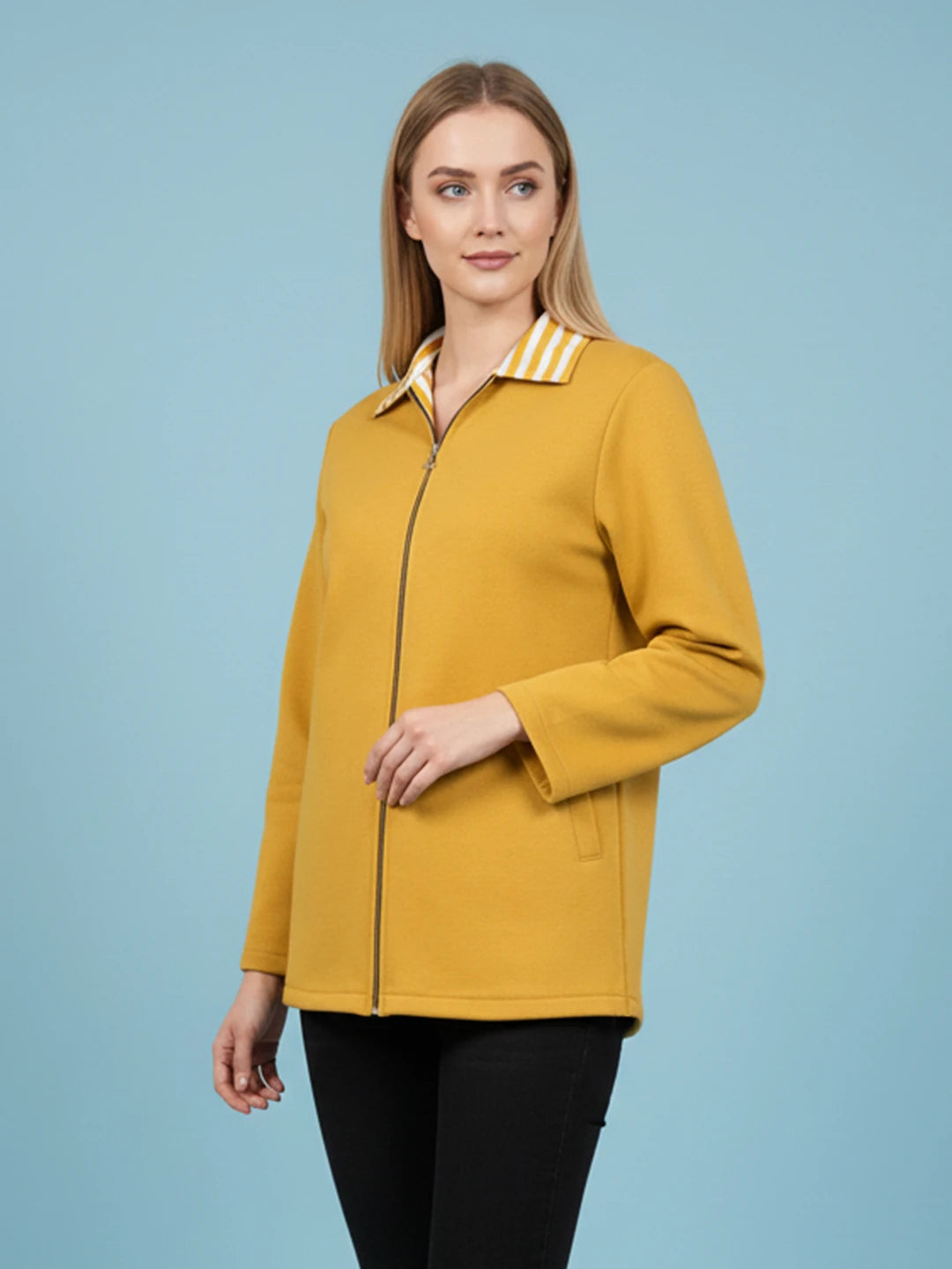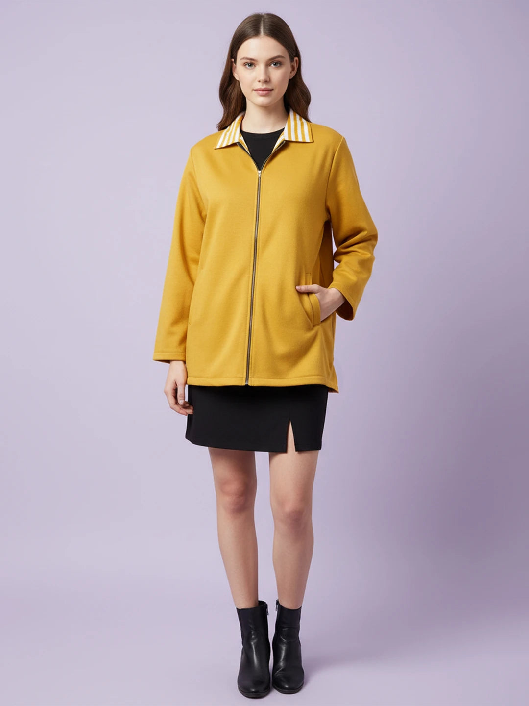 Yellow Zip-Up Fleece Jacket with Printed Detailing